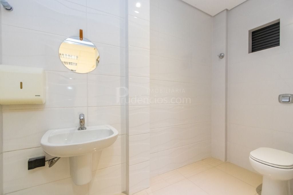 Piso porcelanato em toda área de escritório, banheiros;