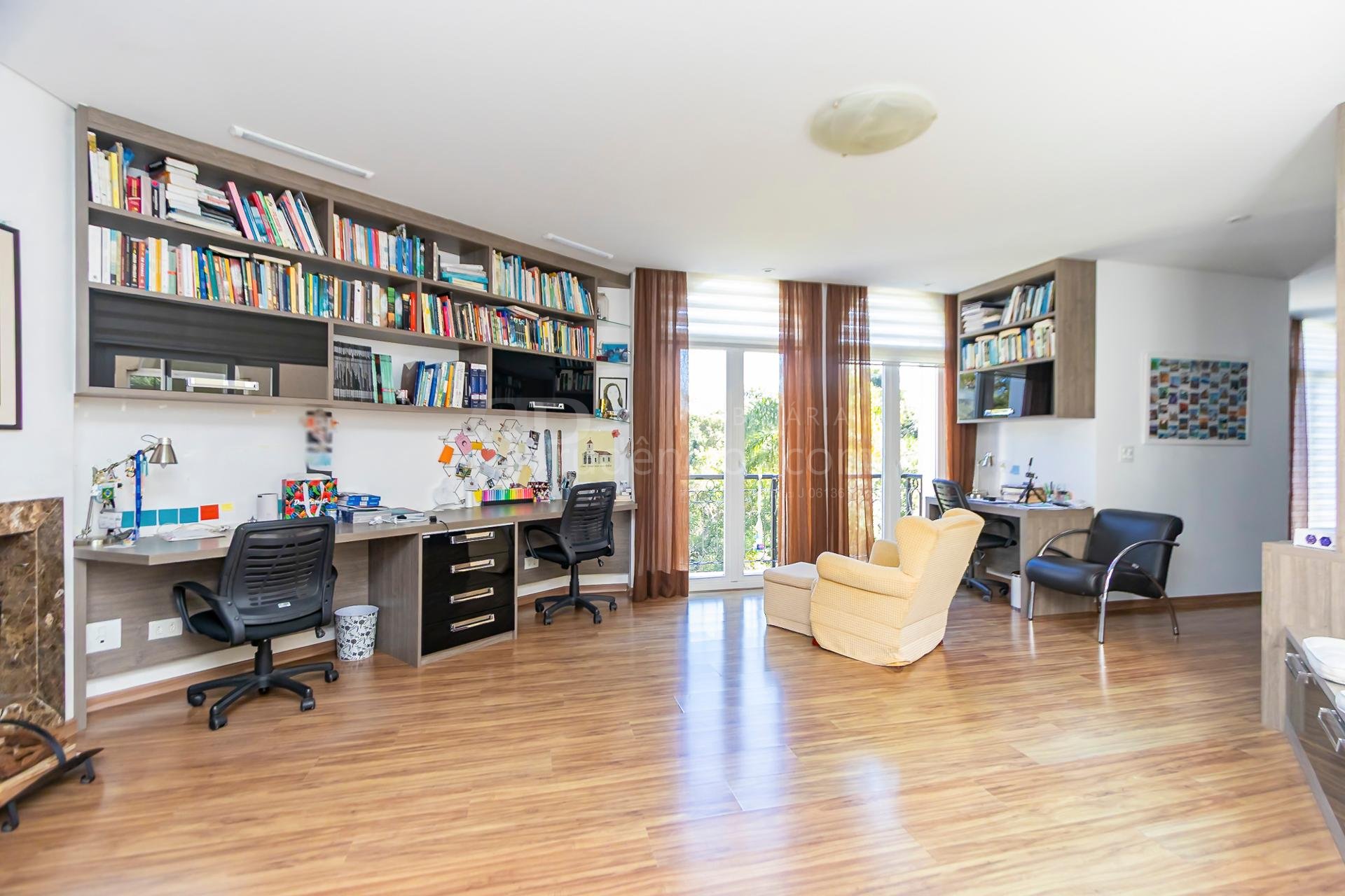 - Escritório amplo e funcional: Espaço de trabalho completo com lareira e até sala de reunião, ideal para quem trabalha de casa com conforto e privacidade;