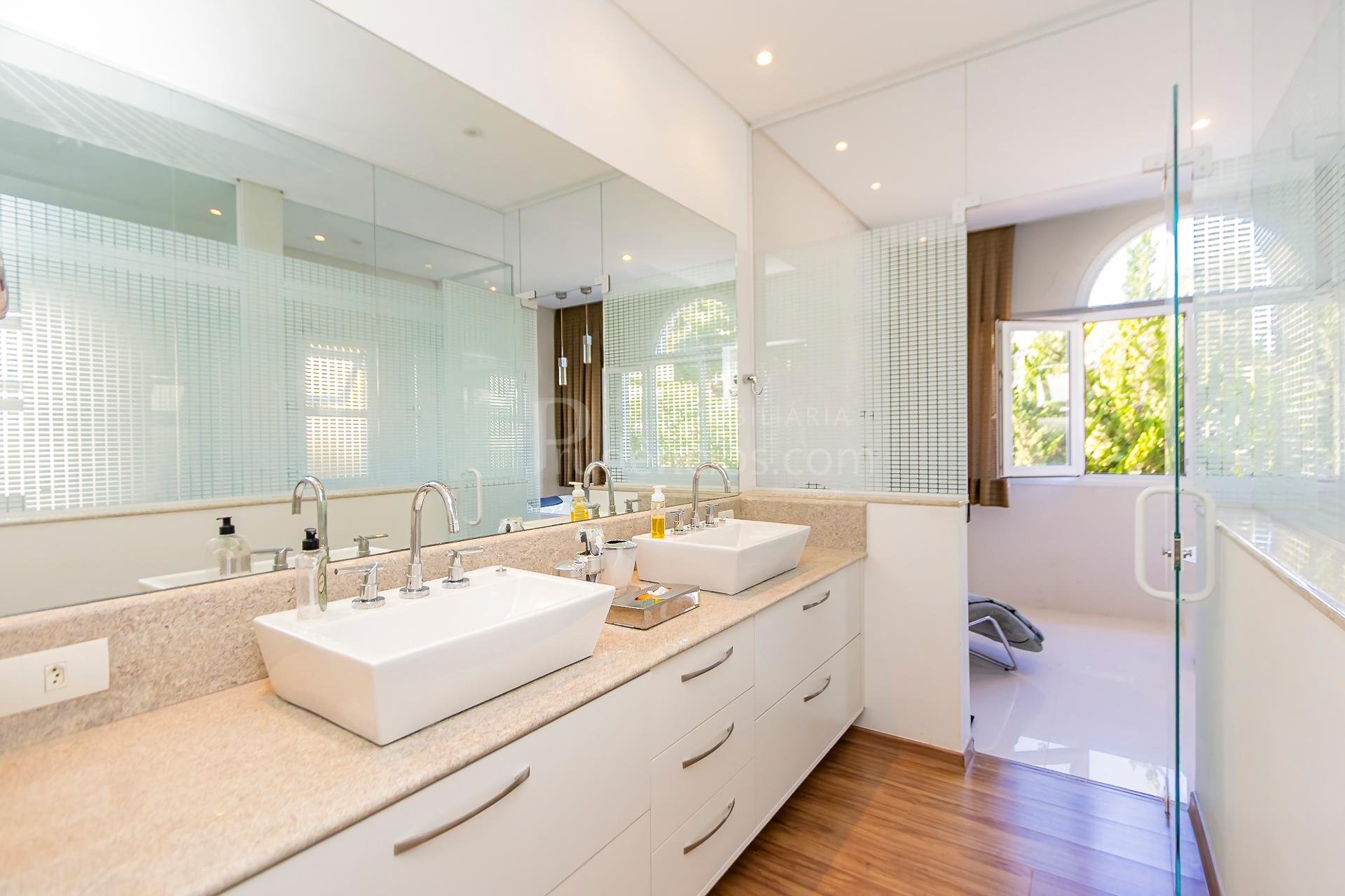 - 4 suítes mobiliadas, sendo 3 com closet e a suíte master com closet, hidromassagem e vista deslumbrante para área de preservação;