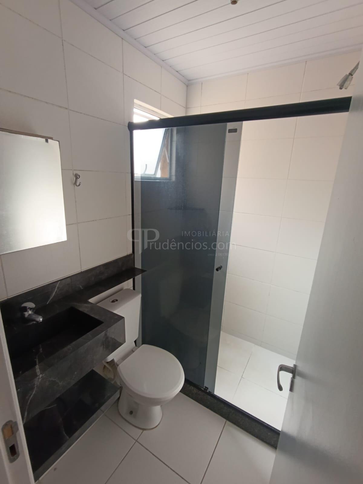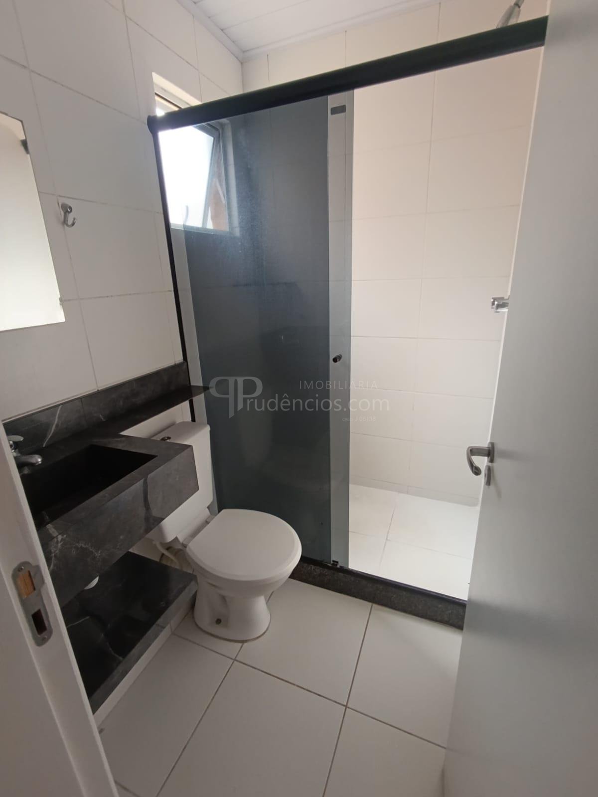 Banheiro social bem distribuído e funcional.