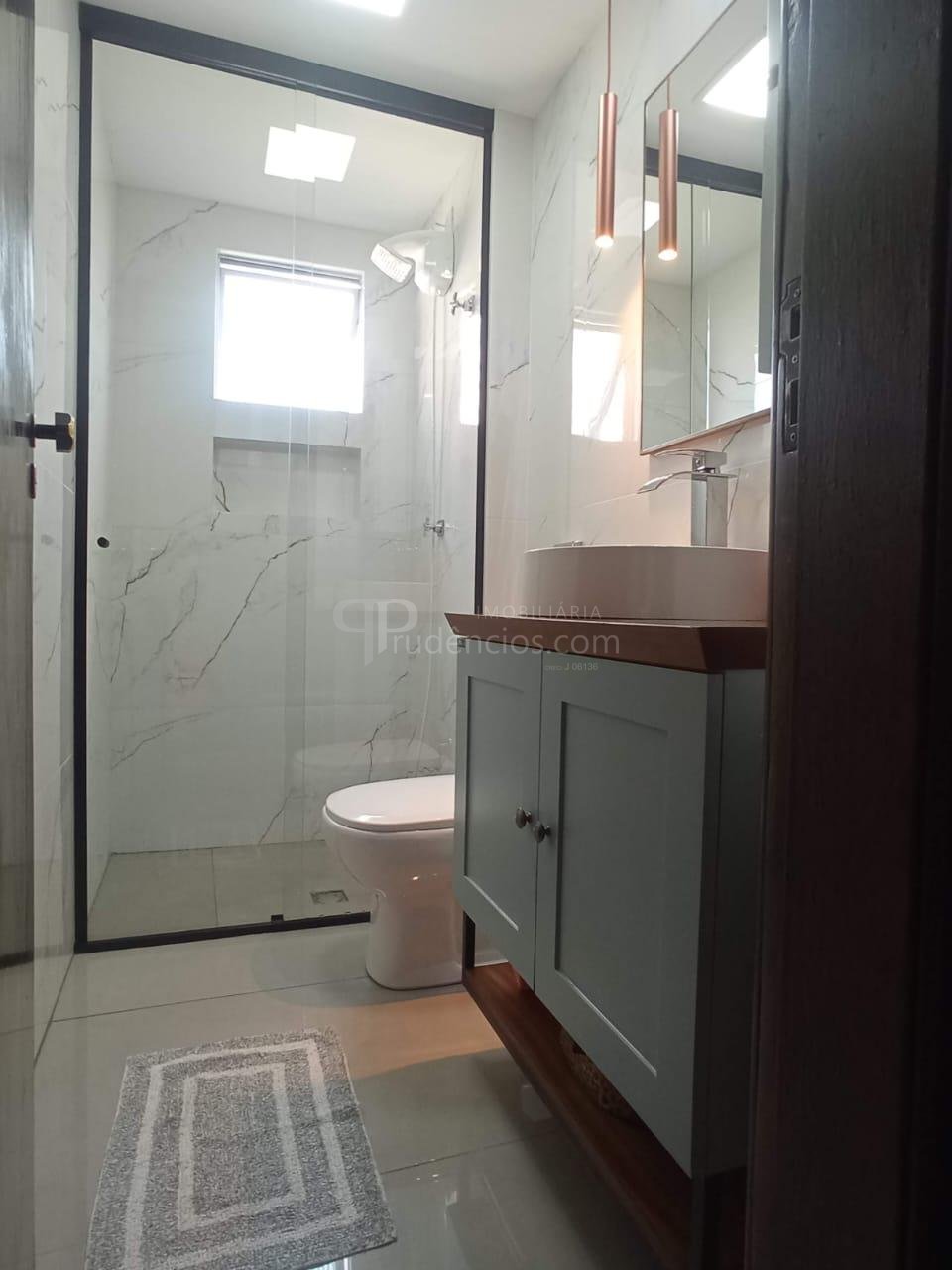 Banheiro social com acabamentos modernos