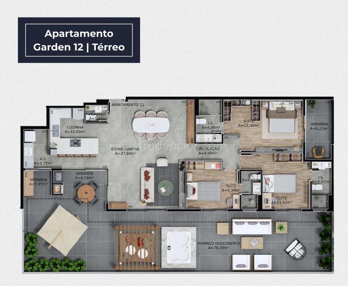 3 dormitorios e 3 vagas - Apartamento 12 Garden Terreo com 213,28m² (134,89m³ coberta e 78,39m² garden) - R$ 2.128.000,00