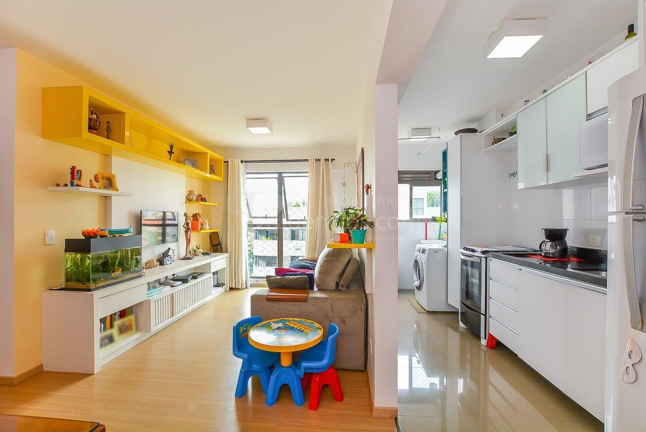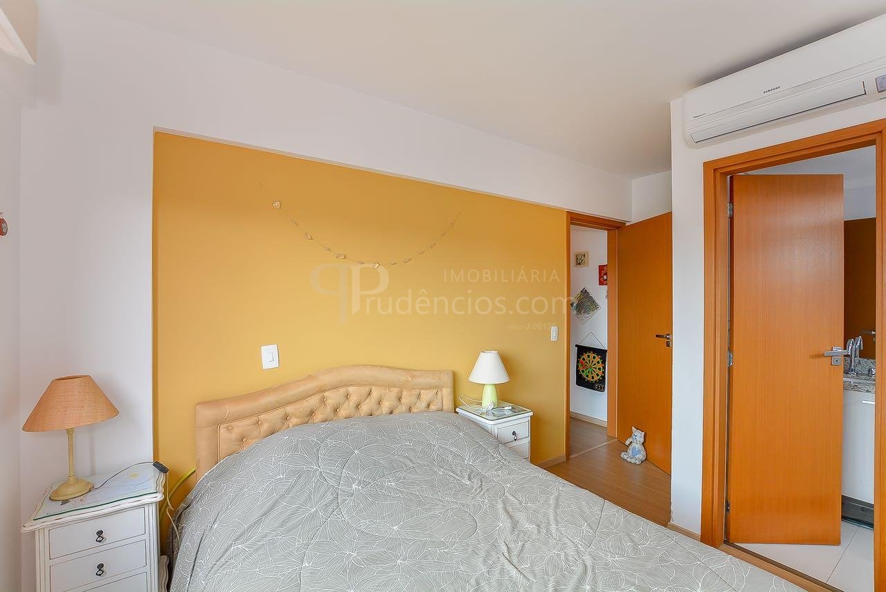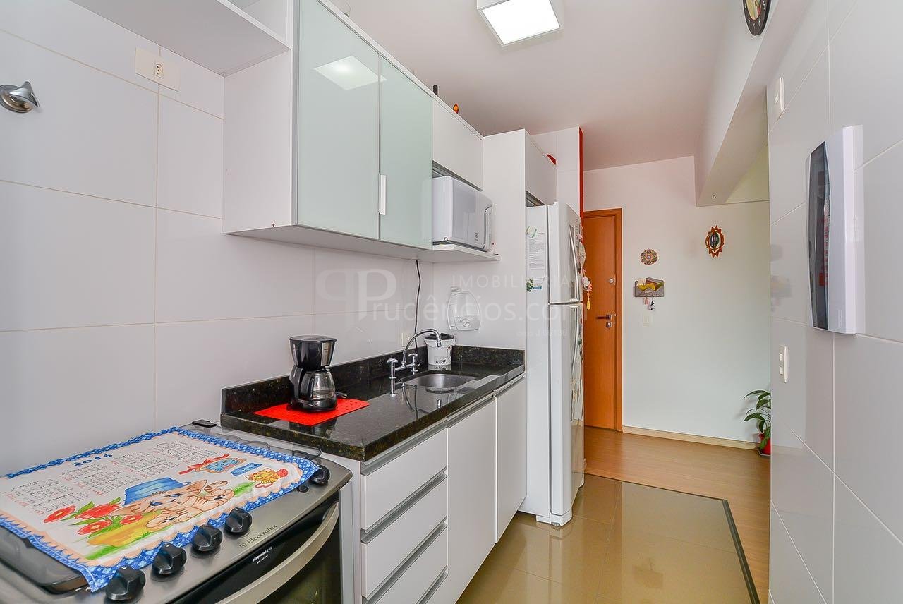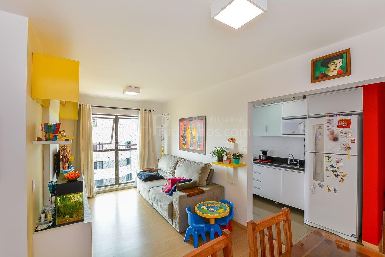 Ed. Paço Real - Champagnat. Ótima localização na Av. Júlia da Costa, próximo ao Supermercado Condor Champagnat e à R. Pe. Anchieta, que dispõe dos mais diversos tipos de comércio e serviços, além de transporte. Apartamento do sexto andar, semi-mobiliado, face oeste, composto por: sala com piso laminado, cozinha com armários e tampo, área de serviços com aquecedor à gás. Dois dormitórios (1 suíte) com armários. Bwc social. Uma vaga de garagem. Empreendimento com fina decoração e acabamento, oferece espaço gourmet completo com churrasqueira e fitness. Para maiores informações ou para agendar uma visita, ligue e fale com um de nossos consultores.** Imóvel locado, a mobília que aparece nas fotos não faz parte da venda, apenas mobília planejada da cozinha, bwc e armários fixos dos quartos. Consulte para detalhes.**Valores e condições poderão ser alterados sem aviso prévio.