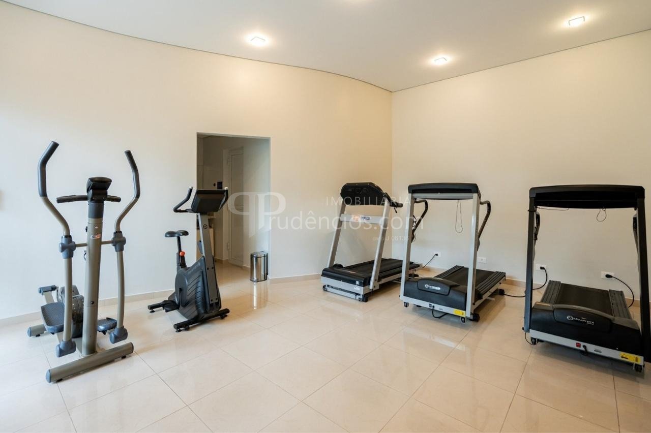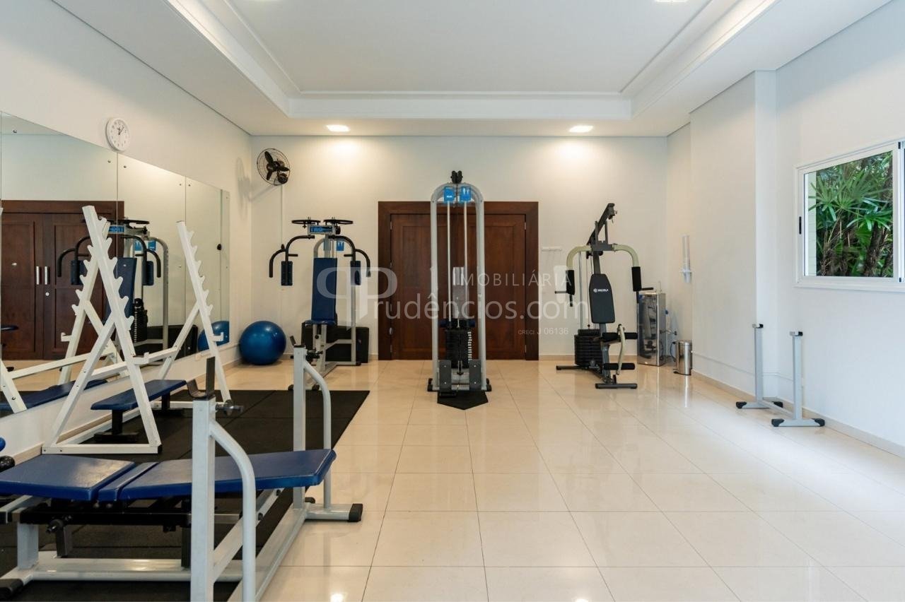 A infraestrutura do condomínio garante opções de lazer e segurança. O hall de entrada, com duas portas de vidro, dá acesso a áreas comuns que incluem piscina, sauna, espaço fitness, playground, quadra esportiva em gramado, salão de festas com churrasqueira, espaço gourmet com churrasqueira e salão de jogos. O condomínio oferece também caldeira, portaria e vigilância 24 horas com guarita e depósito de encomendas, além de elevador, jardim e interfone.