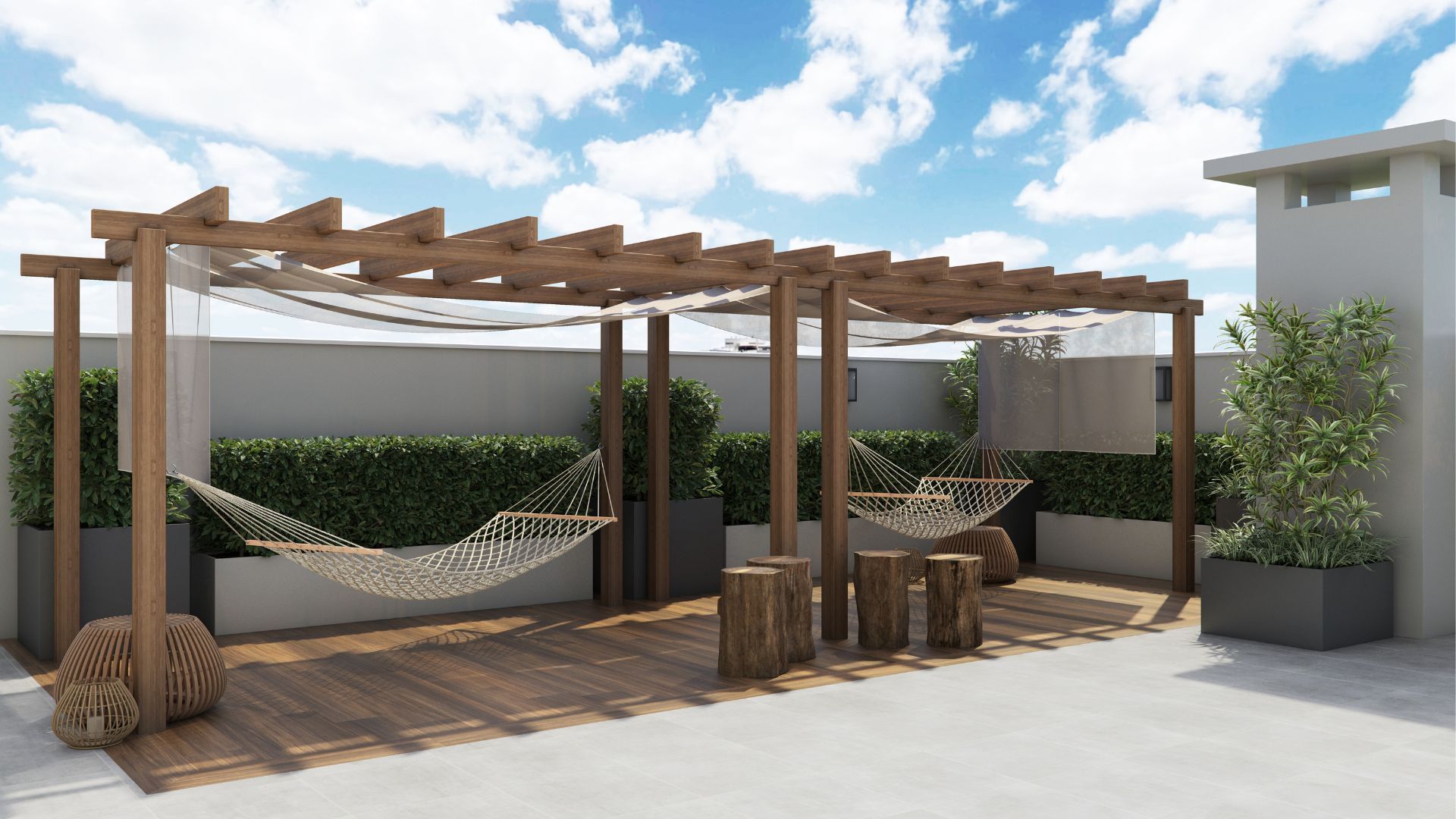 Espaço Zen com redário e fire place, perfeito para relaxar e se desconectar