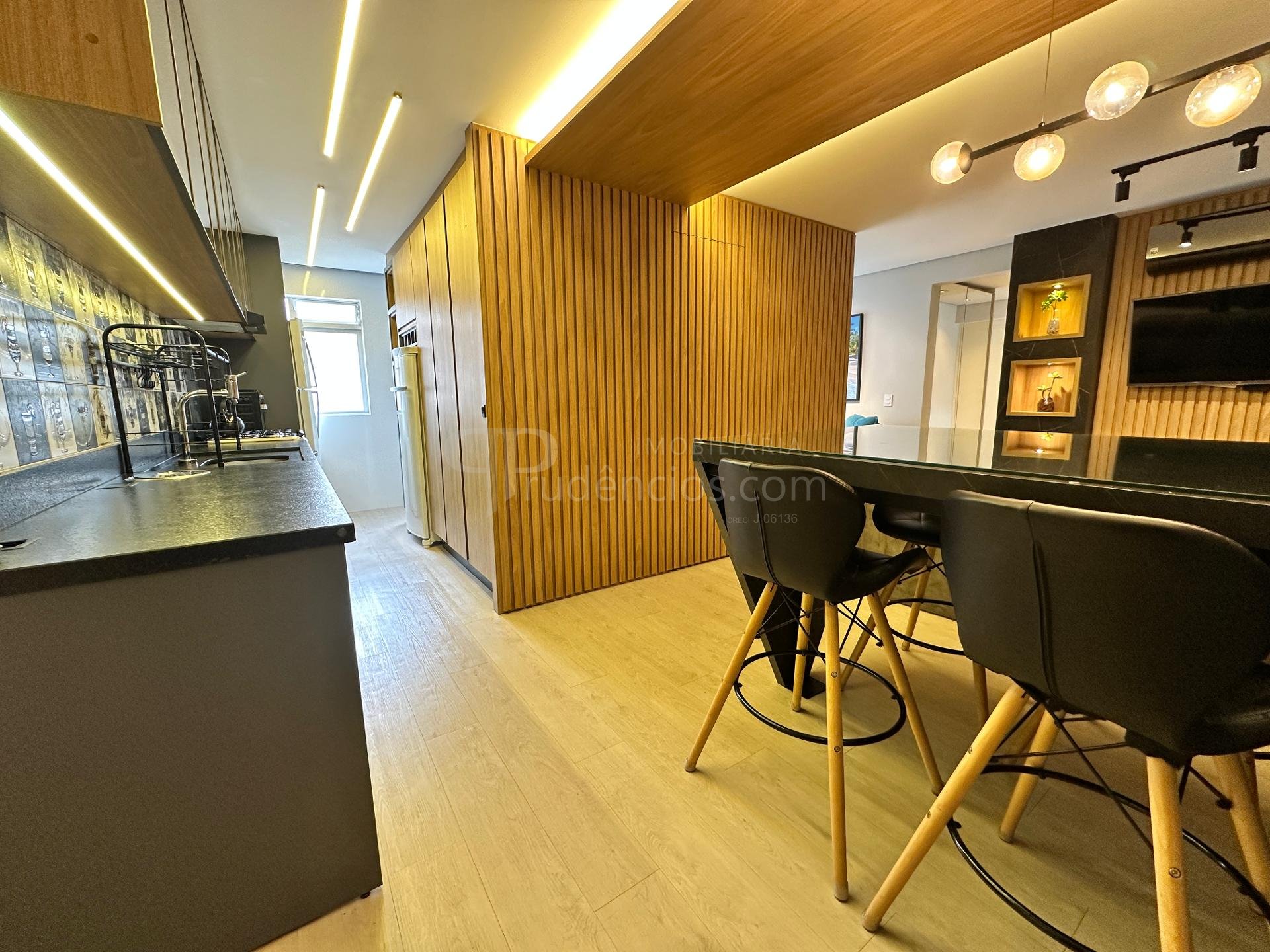 O imóvel está todo reformado e mobiliado, com acabamento e móveis de alto padrão.