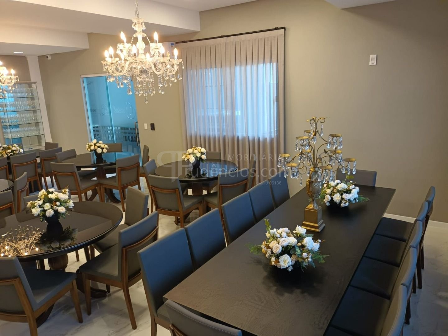 Salão de festas espaçoso, perfeito para celebrações em família e com amigos
