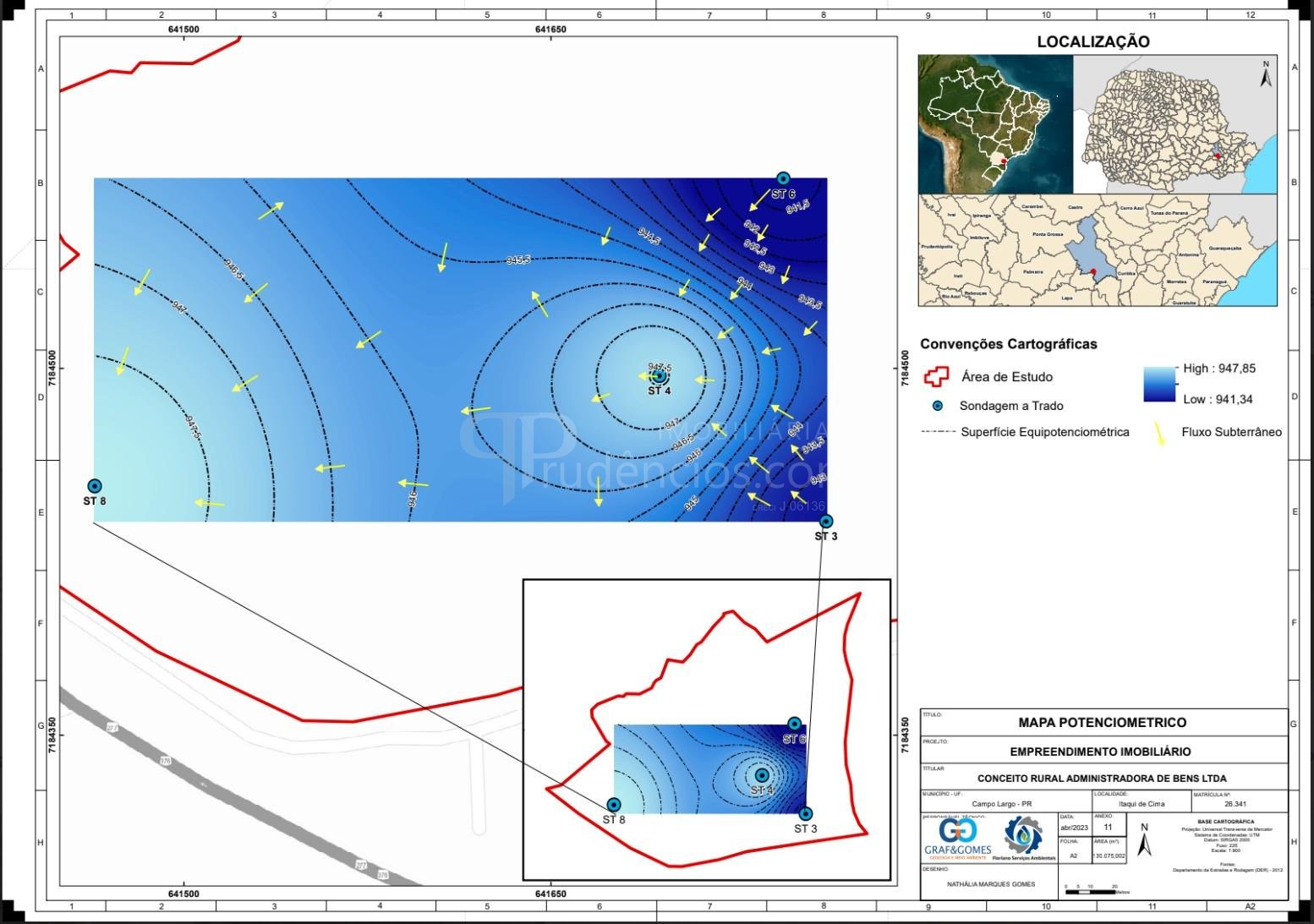 Estudos técnicos realizados: Hidrogeológico, Planialtimétrico e Florístico.