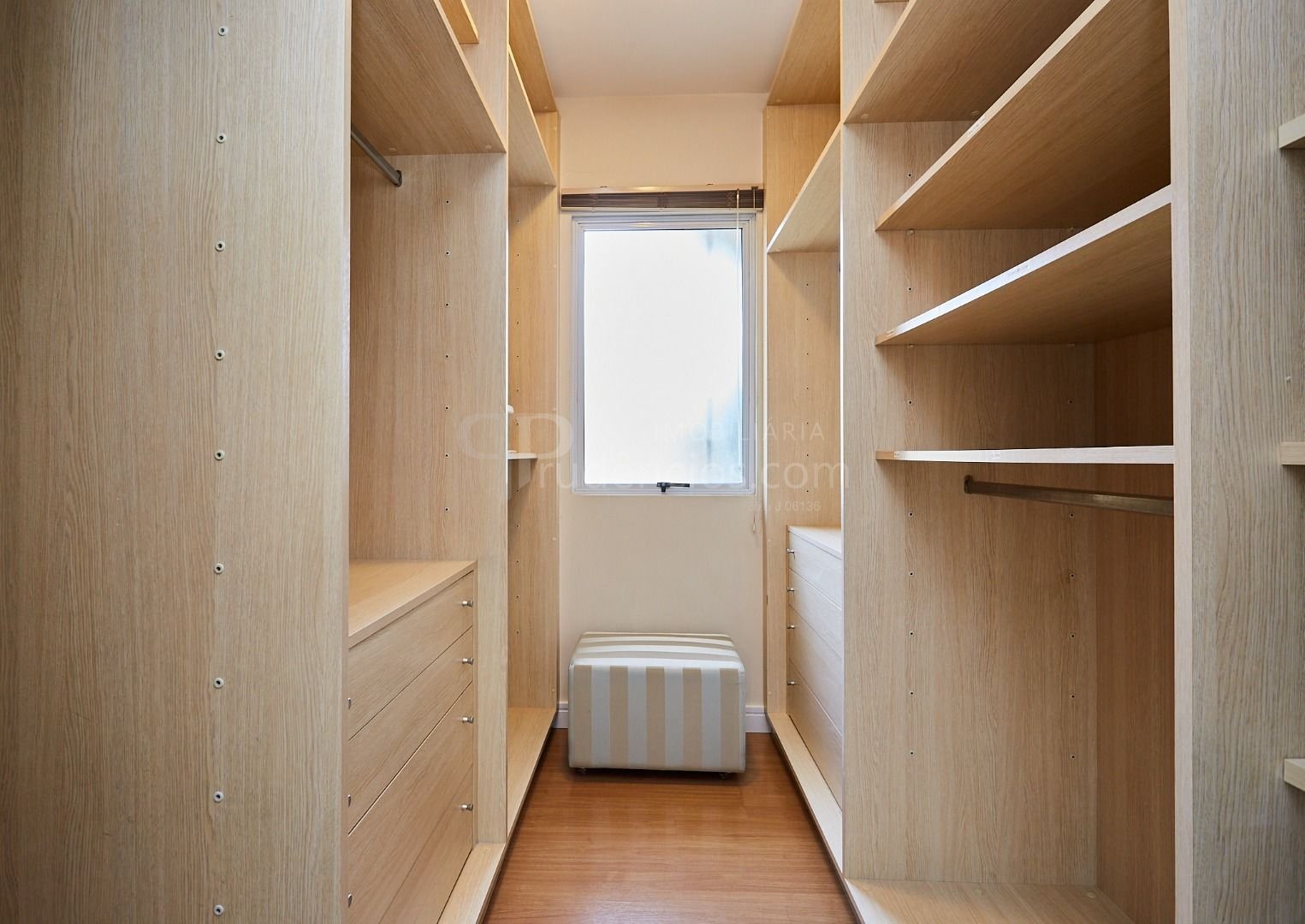 Suíte master exclusiva: amplo closet, banheiro com hidromassagem e bancada com cubas duplas.