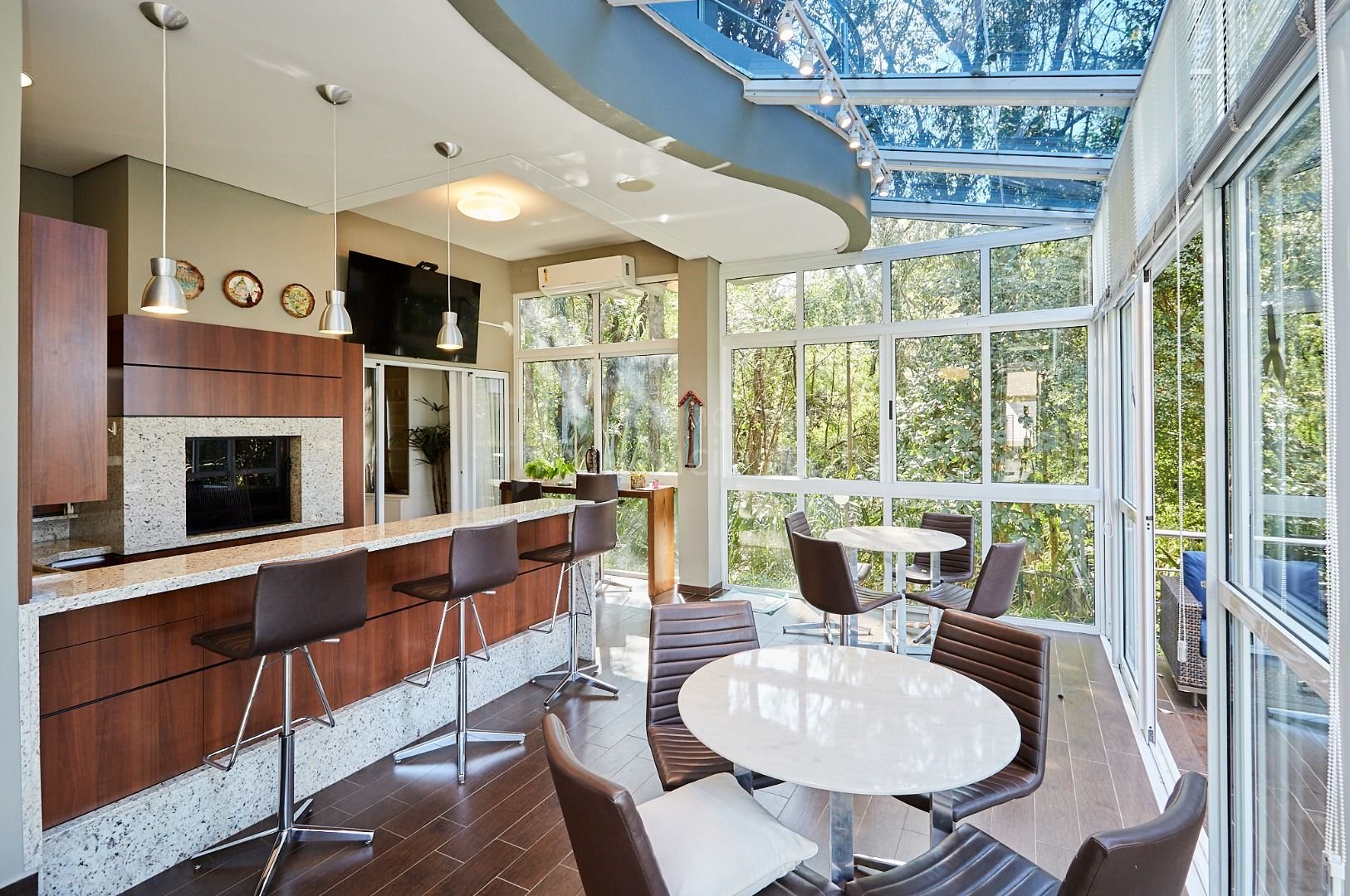 Com 368 m² de área privativa (285 m² averbados) em um terreno de 1.245 m², esta casa de alto padrão está cercada por bosques preservados e jardins exuberantes, criando um refúgio urbano incomparável.