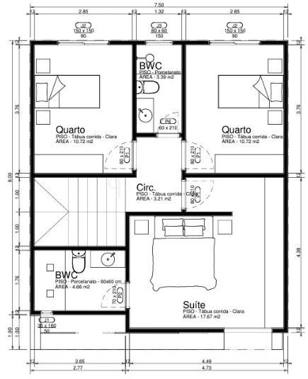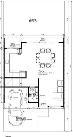 Terreno e área construída: 7,5 x 16 m (120 m² de terreno e 120 m² de área construída).