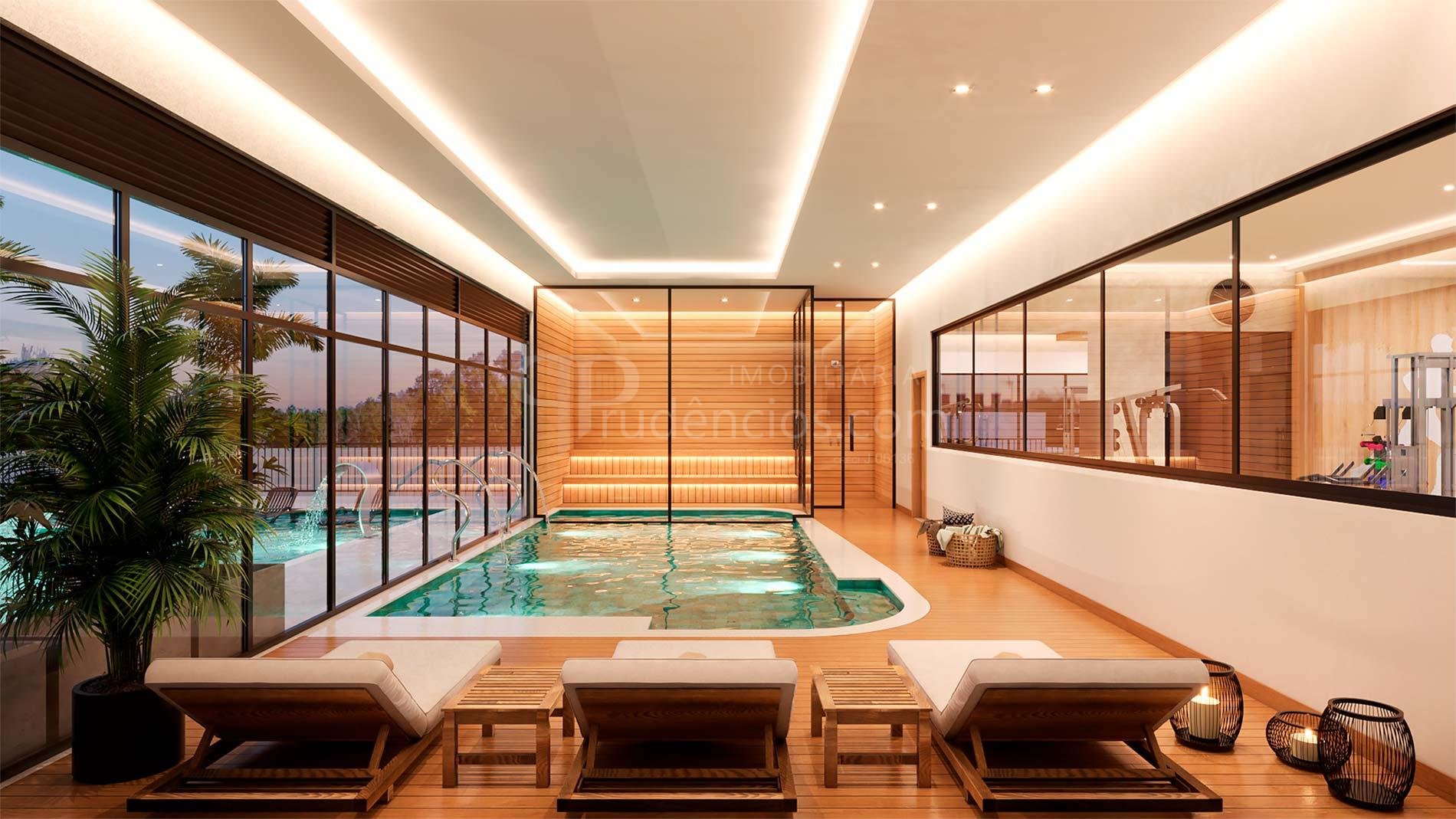 Piscina, Piscina aquecida, Spa com Sauna, Academia Completa,2 salões de festas, Sala de jogos, Espaço Kids, Playground, Quadra poliesportiva, Praça de exercícios, Sports Bar, Espaço Pet, Quadras em areia para beach tennis, vôlei de praia e futevôlei,