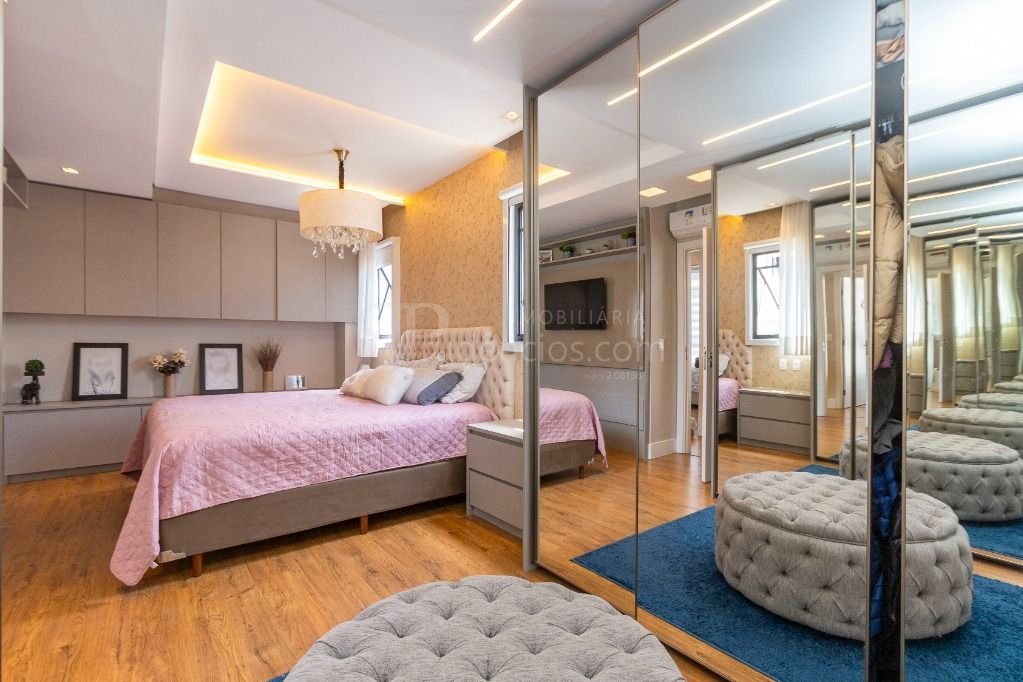 No segundo pavimento temos 3 quartos, sendo uma suíte com banheiro senhor e senhora, closet integrado, banheiro social e mais 2 amplos dormitórios.