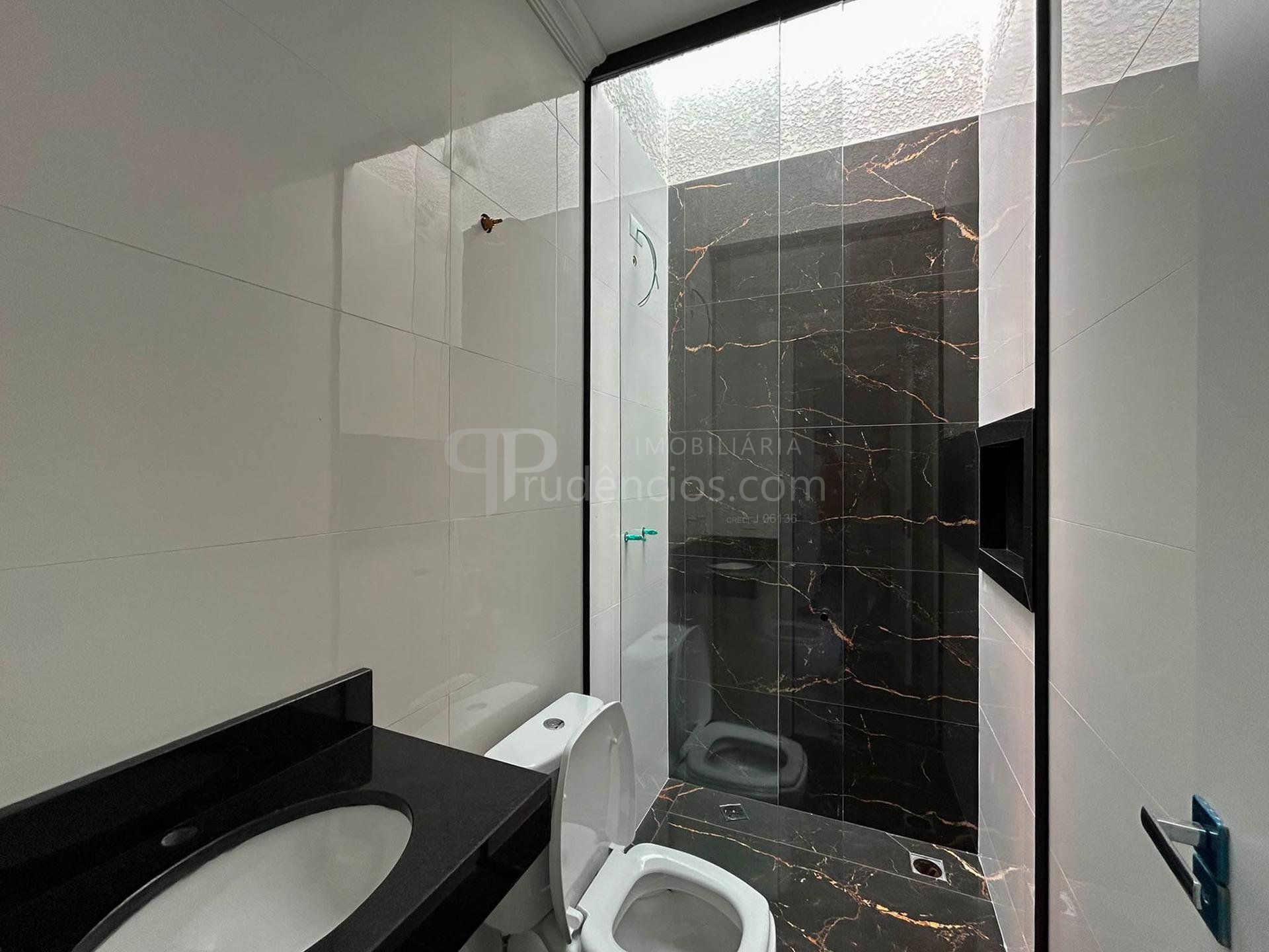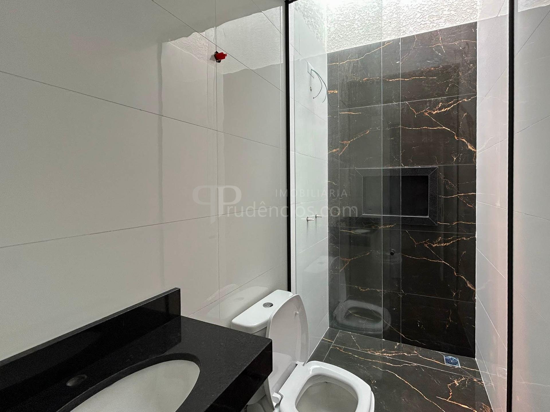Banheiros com box em vidro e acabamento refinado