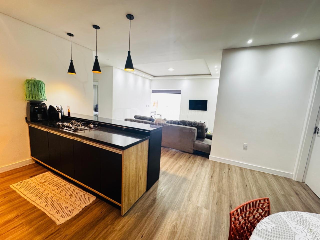 A área social é um convite à convivência: sala e cozinha em conceito aberto, com excelente aproveitamento de espaço e acabamento refinado. As portas de correr em vidro fumê em toda a fachada frontal ampliam a sensação de liberdade e integram o ambiente à área externa - perfeita para receber.