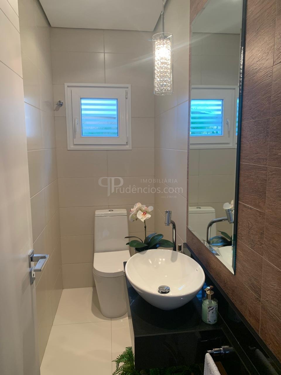 para lazer e convivência. A área social também inclui sala de estar com home theater e sistema de som, living decorado, sala de jantar ampla com lareira a gás e uma charmosa sala de vinhos. Ainda no pavimento térreo há uma confortável suíte de hóspedes.