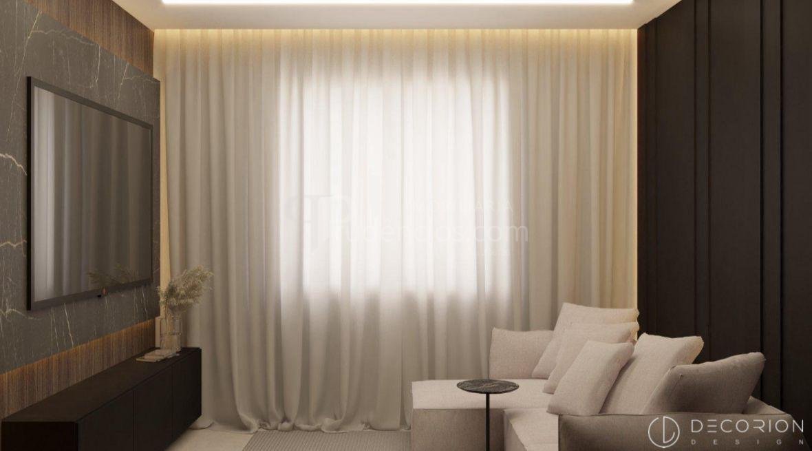 Arquitetura moderna, com pé-direito duplo e iluminado, valorizando amplitude e integração dos ambientes.