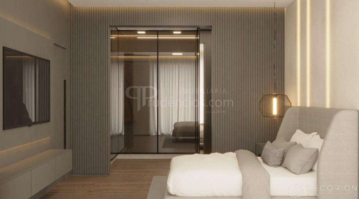 4 dormitórios, sendo 3 suítes com closet; suíte master com ampla sacada privativa e sacadas contornando quase toda a parte superior da casa (pavimento superior). Possibilidade de conversão de um espaço no térreo para uma 4ª suíte, ideal para hóspedes ou acessibilidade.