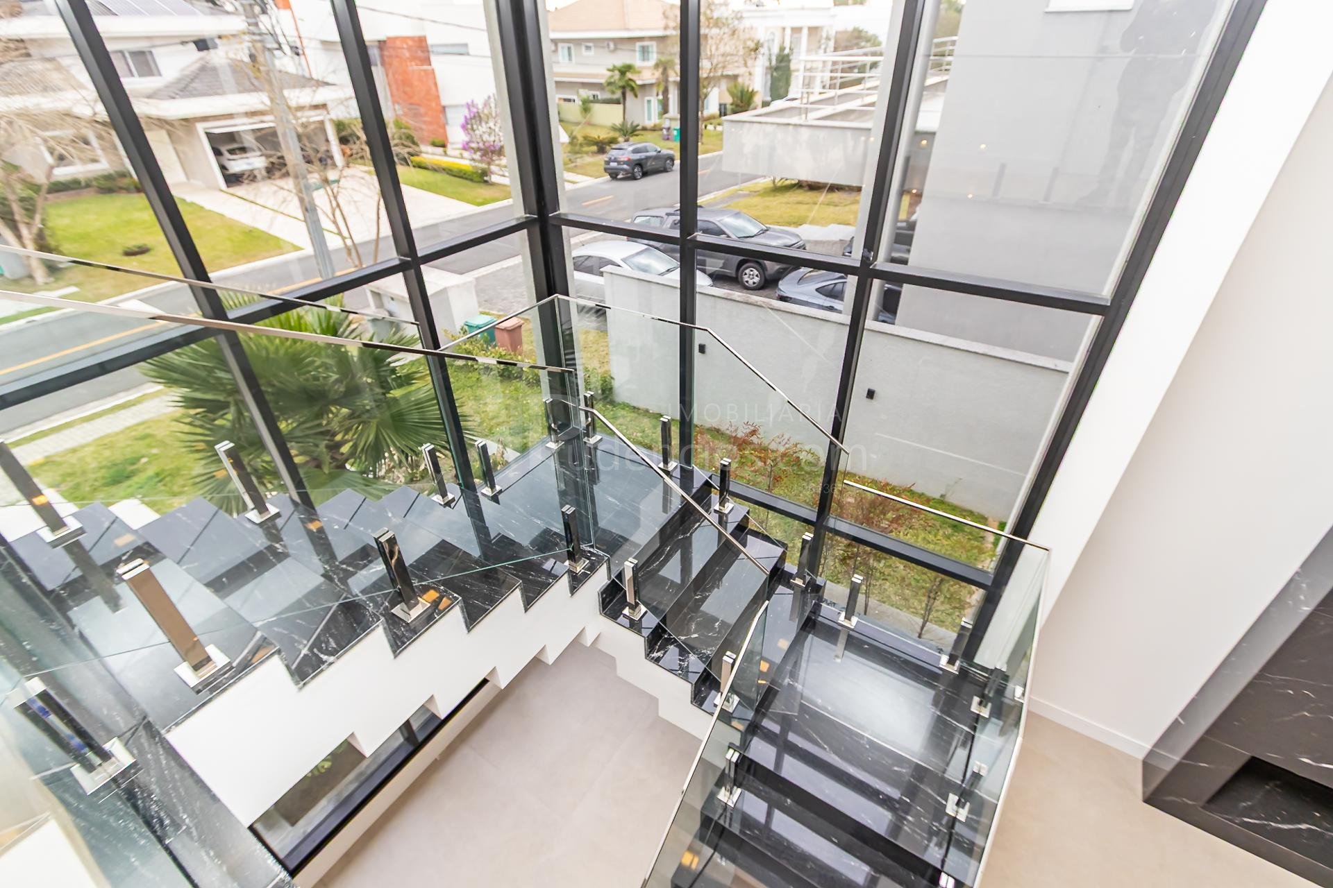Guarda-corpo em vidro duplo, unindo elegância e segurança.