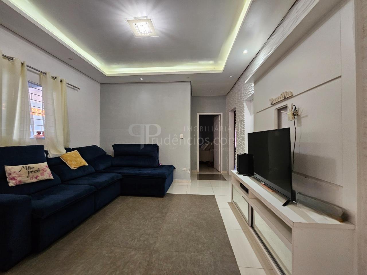 Sala ampla com teto rebaixado em gesso