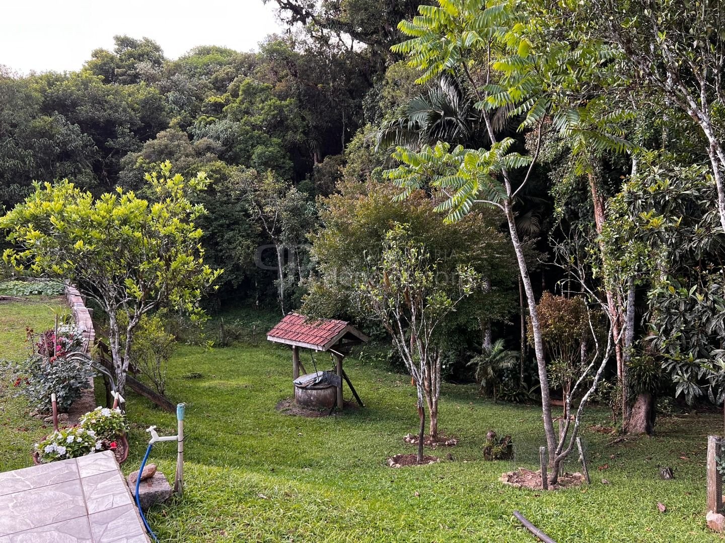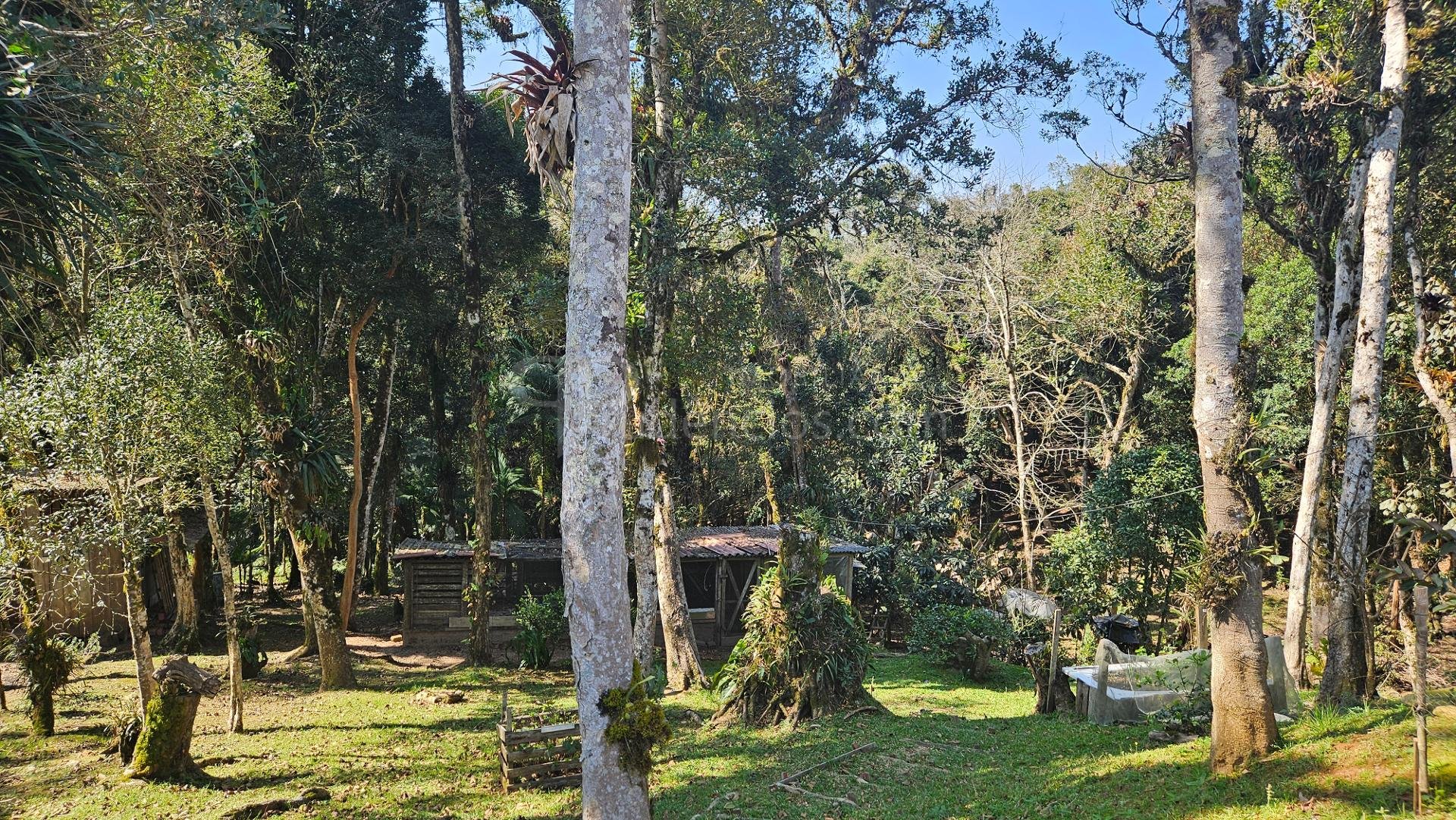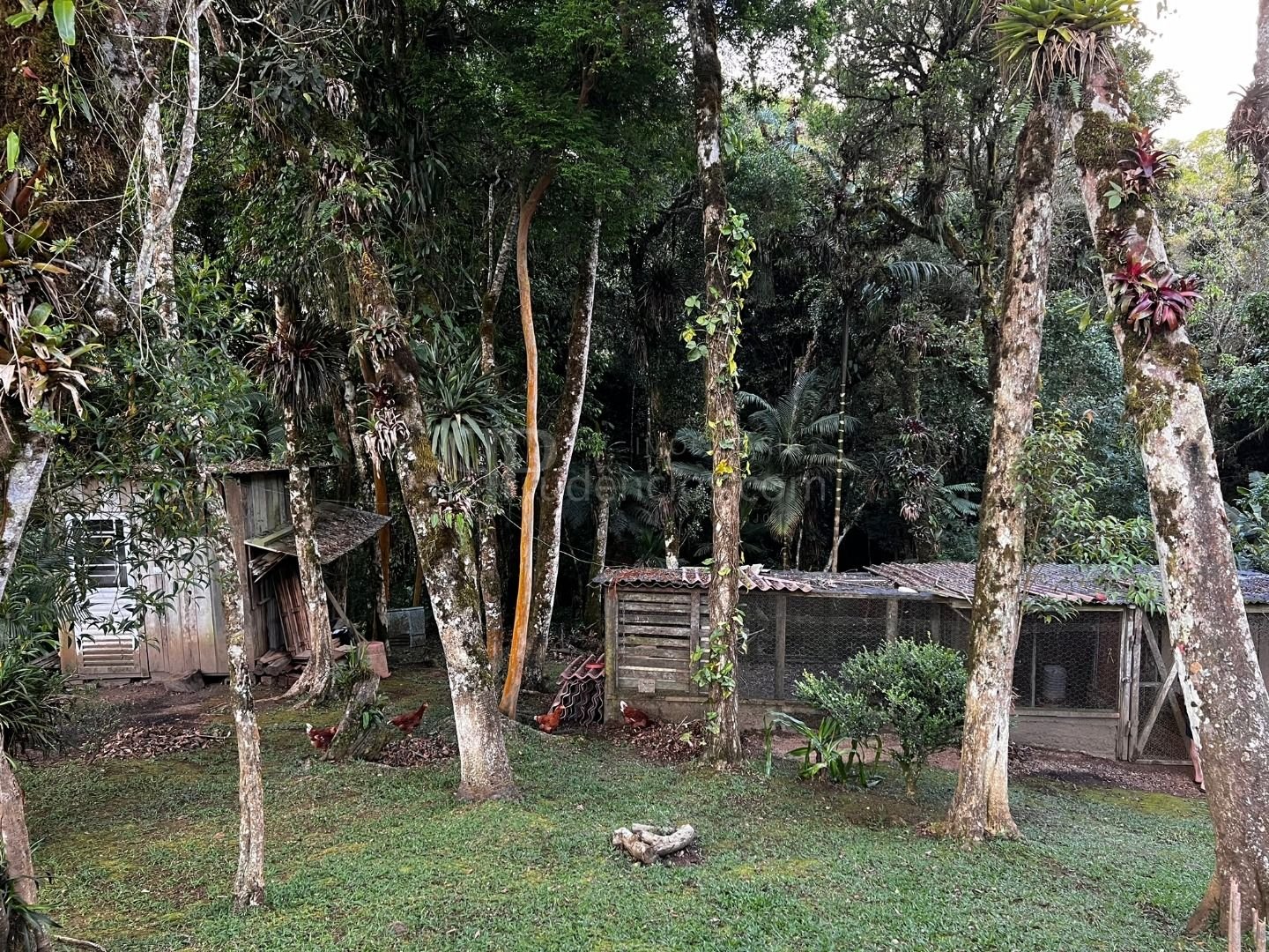 Estrutura rural: galinheiro, potreiro, horta, pasto e amplo bosque.