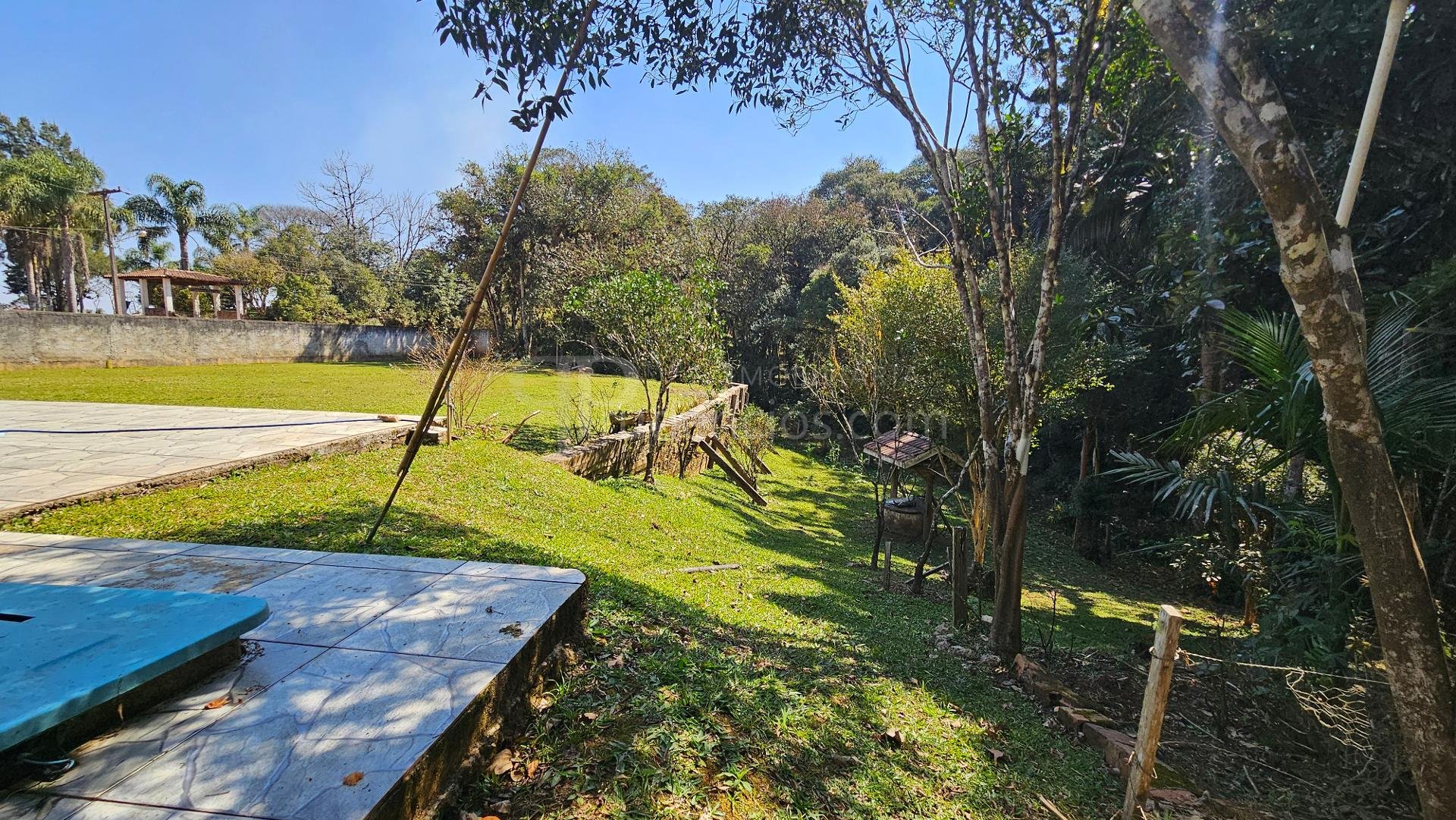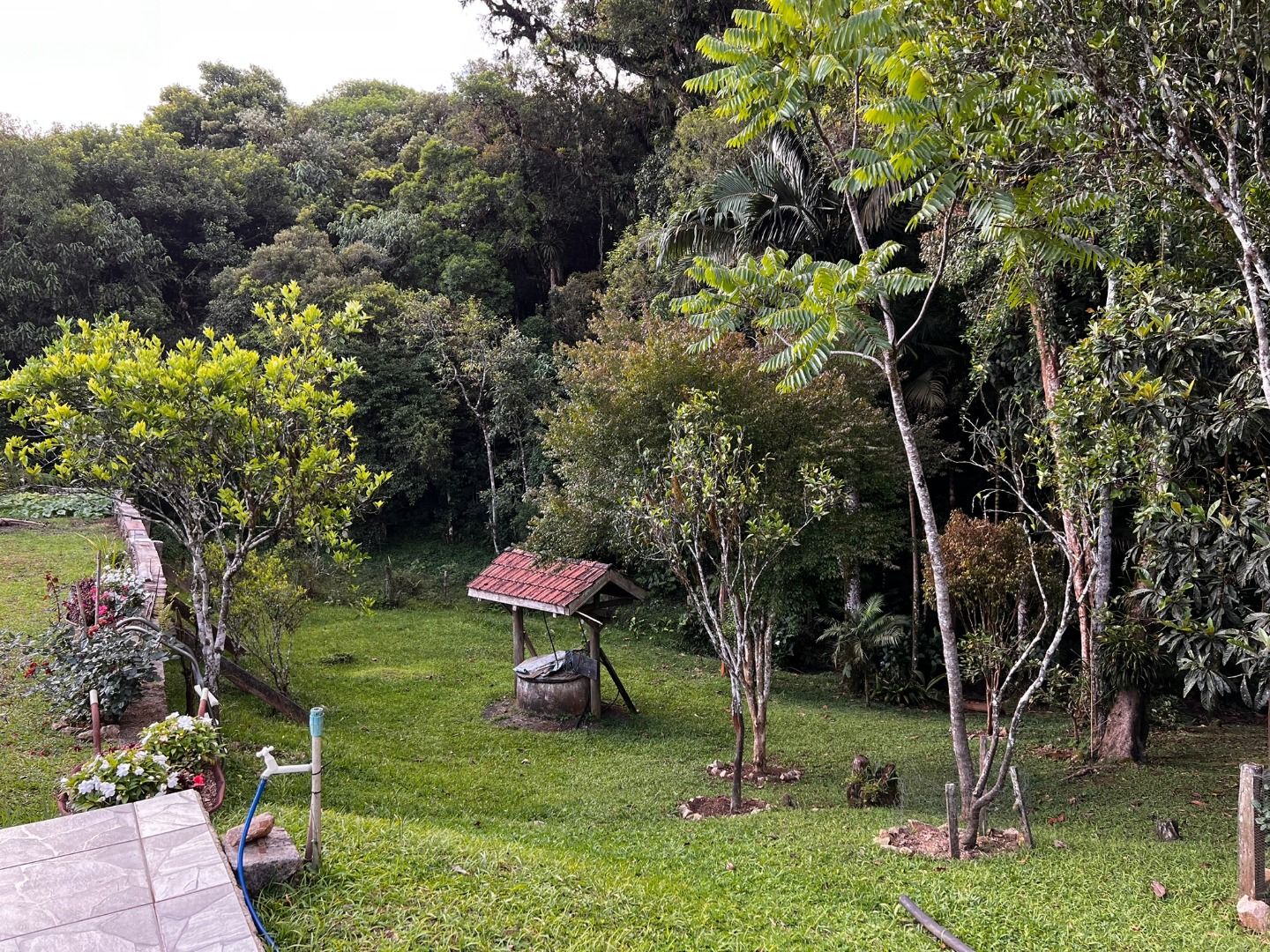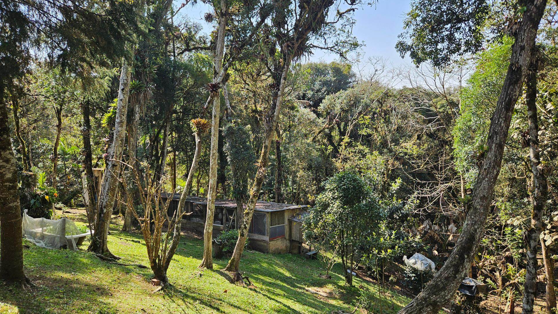 Estrutura rural: galinheiro, potreiro, horta, pasto e amplo bosque.