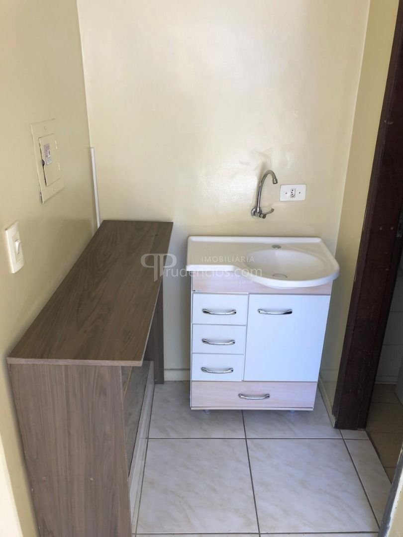 Pequena cozinha funcional para apoio interno.
