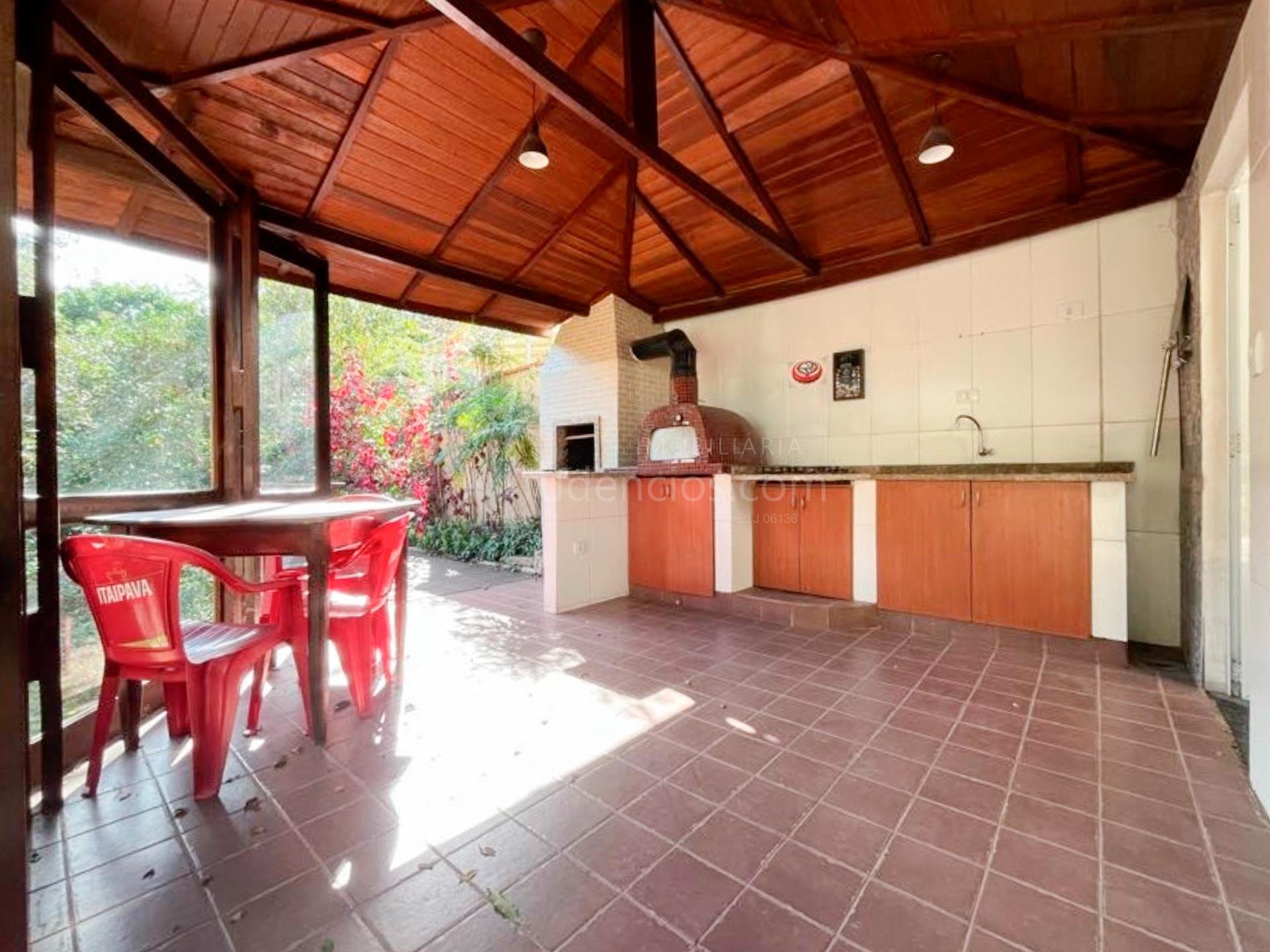 Espaço gourmet completo com churrasqueira, cooktop e forno de pizza a lenha
