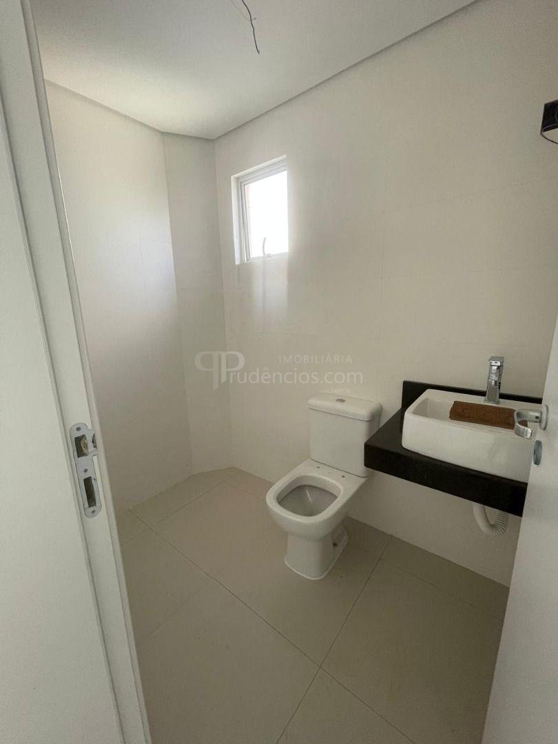 Banheiro social e lavabo, com acabamento refinado e design funcional.