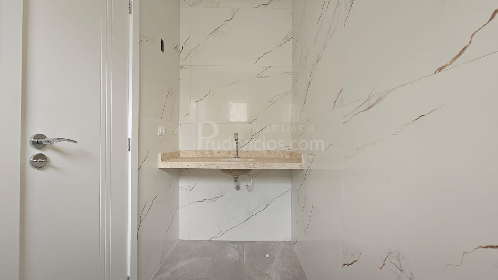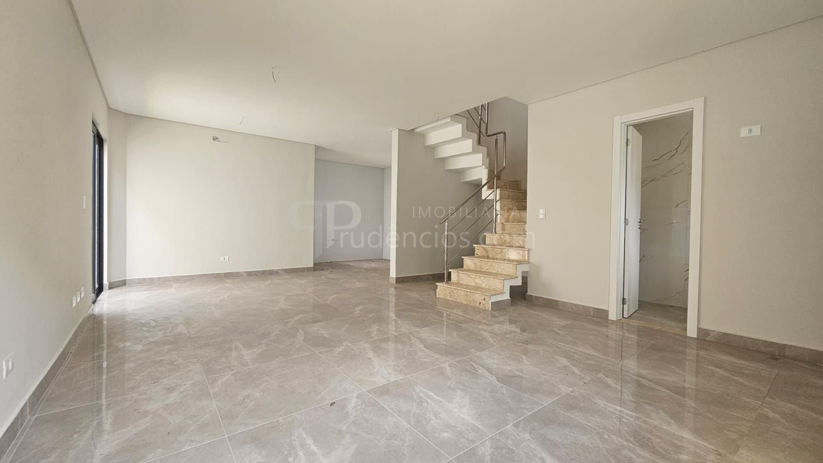 Piso térreo: ampla sala integrada à cozinha em conceito aberto, lavabo e área de serviço.