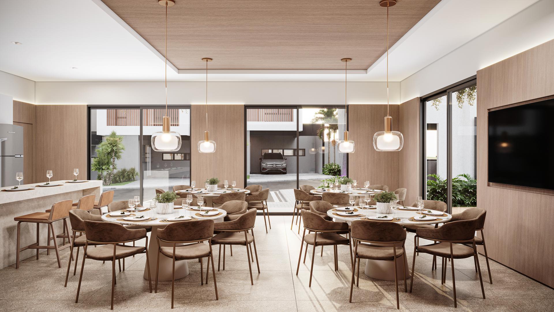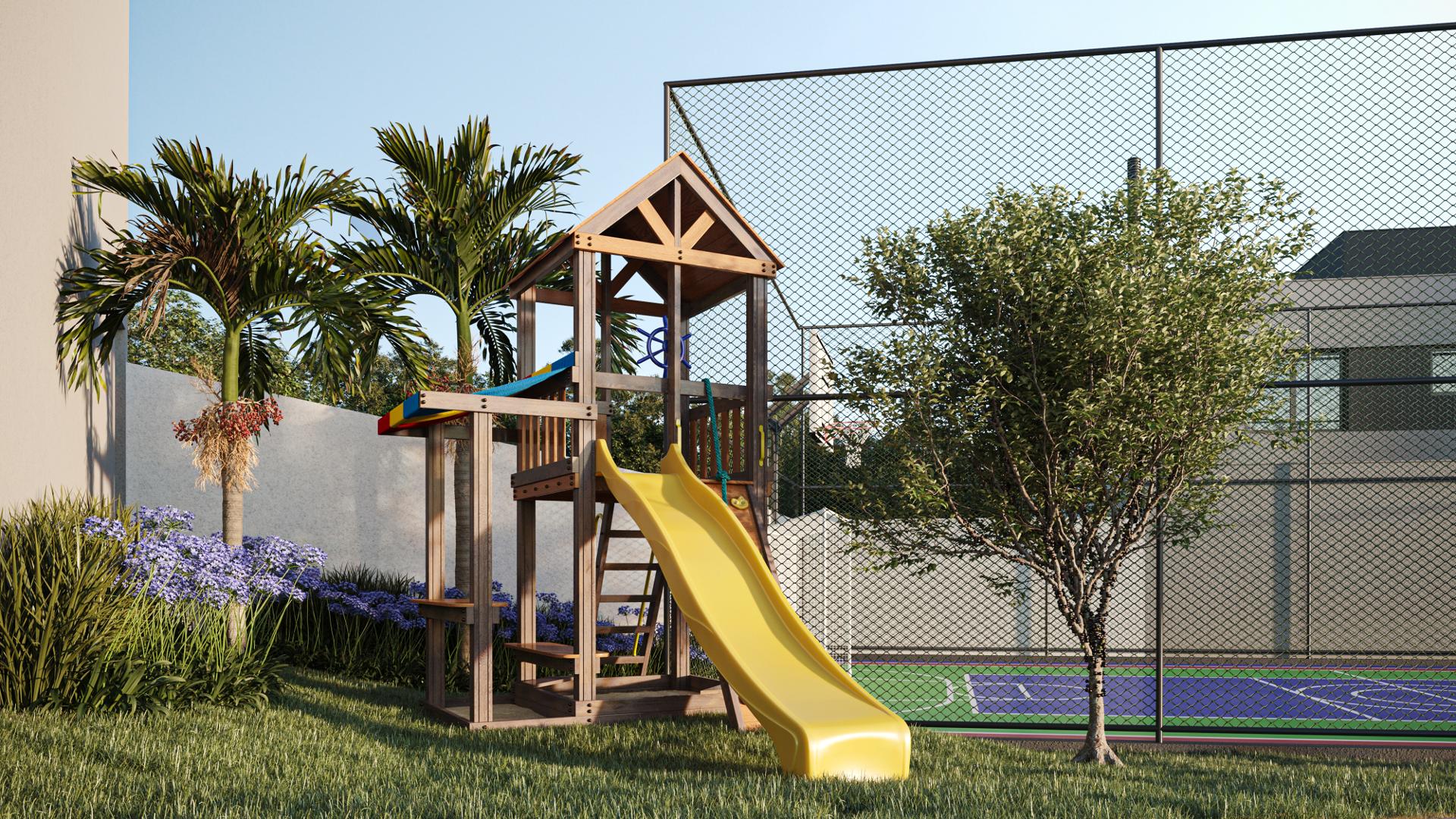 A área de lazer do condomínio é composta com quadra poliesportiva, playground, academia equipada, salão de festas e um bosque privativo para convivência ao ar livre. A segurança é reforçada por um sistema de câmeras, cerca elétrica perimetral, sistema de alarme e infraestrutura para portaria remota, oferecendo tranquilidade e privacidade.