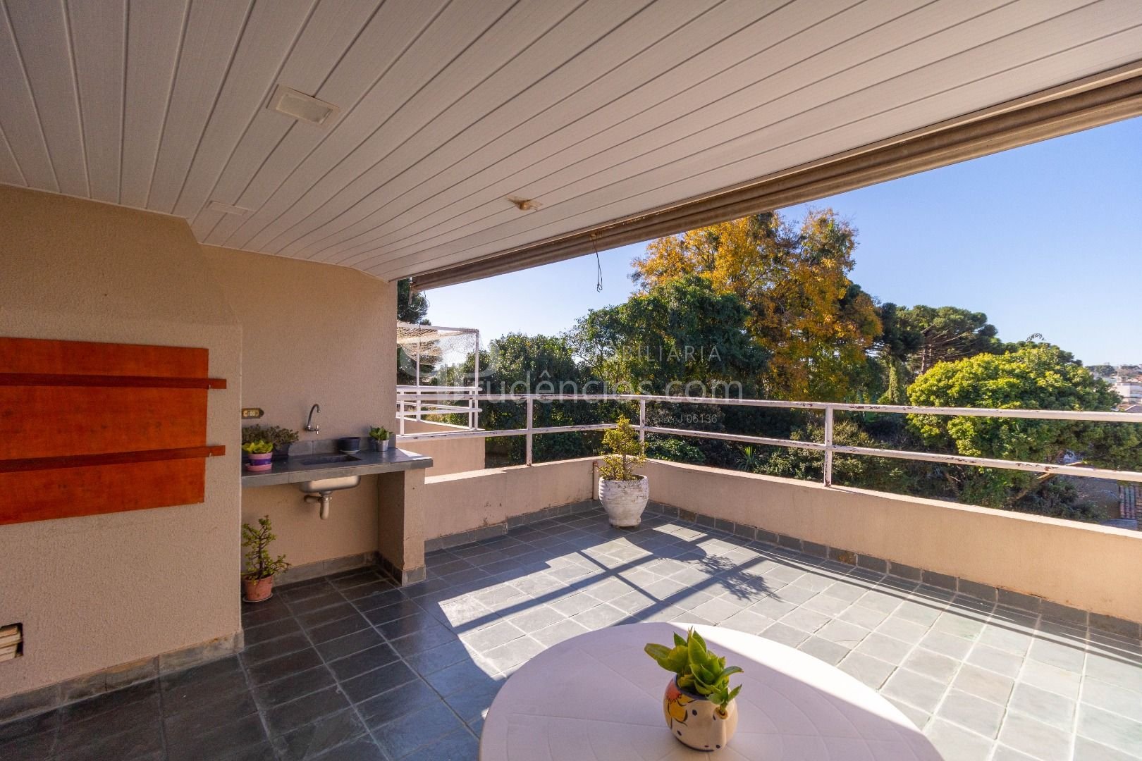 Terraço com Churrasqueira: Área ideal para lazer e confraternizações, com uma vista deslumbrante e relaxante da cidade.