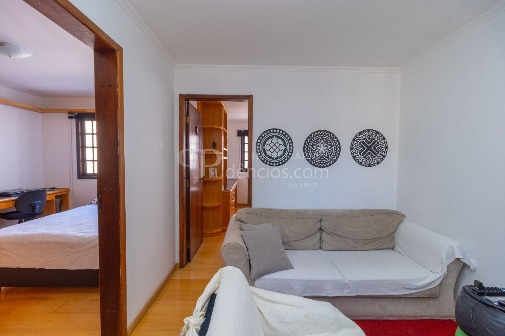 Sala íntima entre os quartos: Ambiente acolhedor para momentos de convivência e descanso.