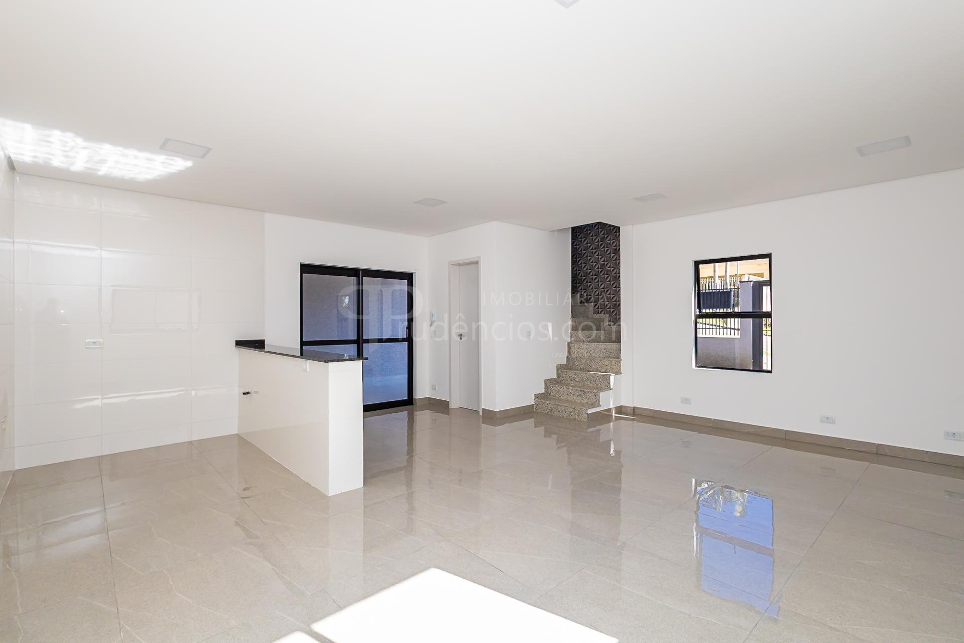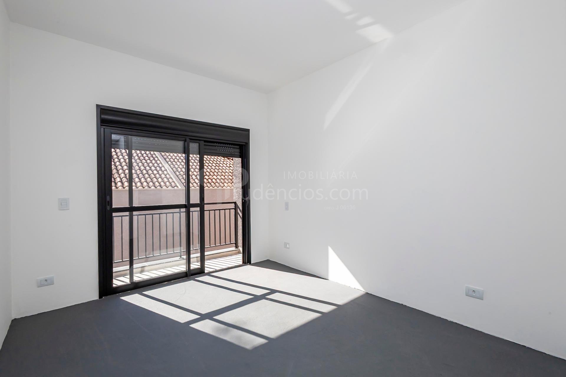 Sobrado novo à venda no Santa Cândida com projeto moderno, excelente iluminação natural e acabamentos de alto padrão. São 148,34m² construídos muito bem distribuídos, com 3 suítes amplas (todas com sacada, persiana integrada, pé-direito alto e infraestrutura para ar-condicionado), sendo duas delas com closet.