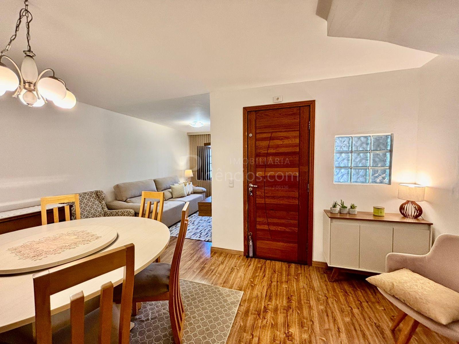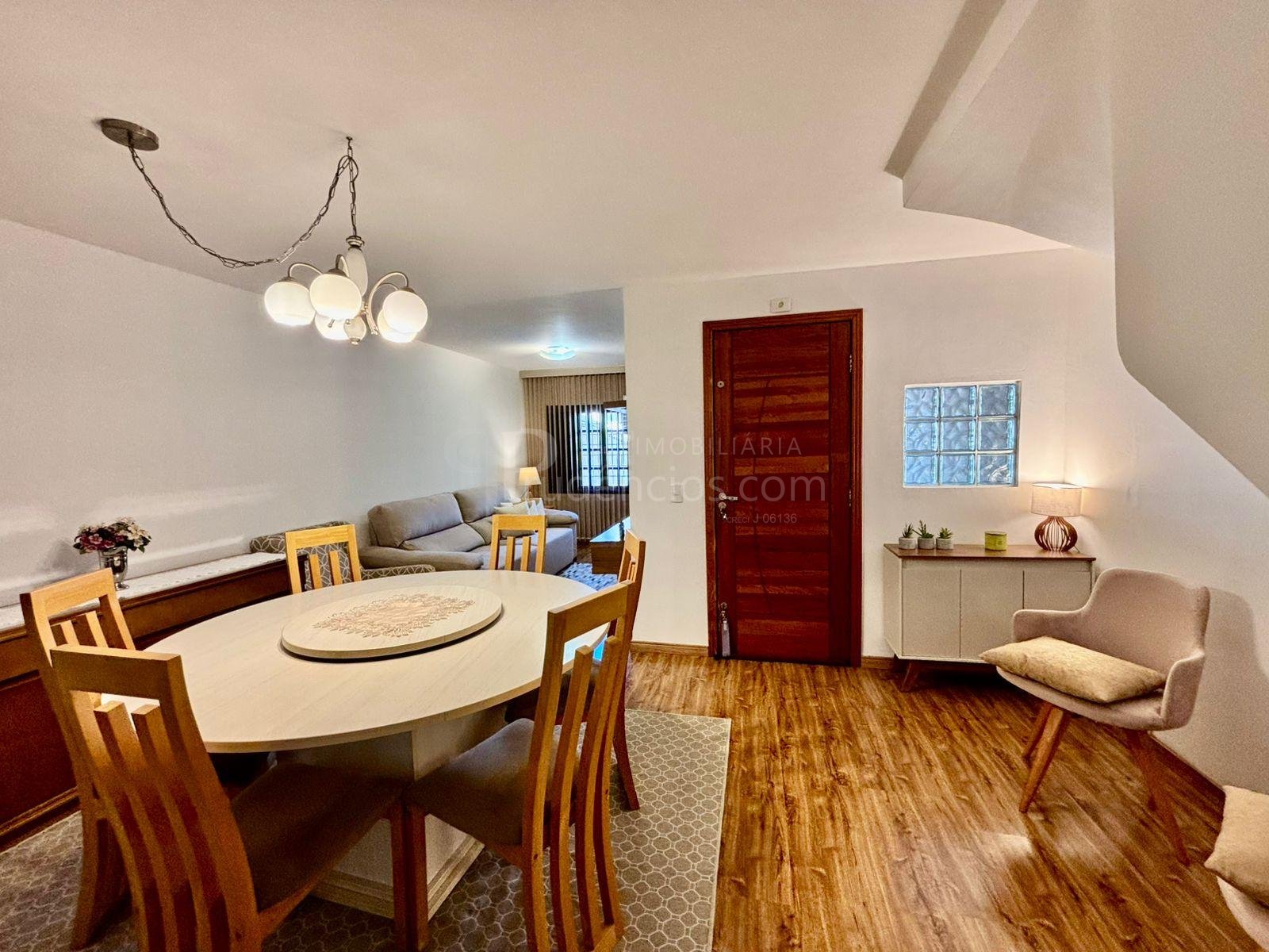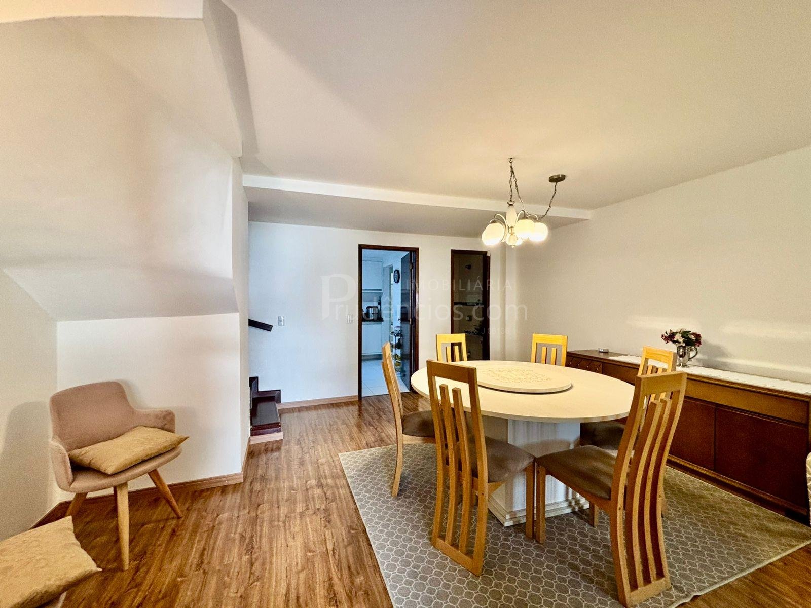 A cozinha também se destaca pelo bom tamanho, com móveis planejados de qualidade e espaço para mesa, tornando o ambiente funcional e acolhedor, além de contar com uma área ao lado para passagem e organização de roupas. O imóvel possui vaga de garagem para dois carros, com possibilidade para um terceiro.