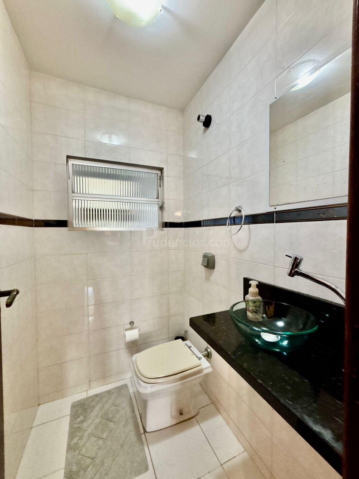 O lavabo é espaçoso e possui pé direito convencional, não ficando embaixo da escada, o que garante mais conforto.