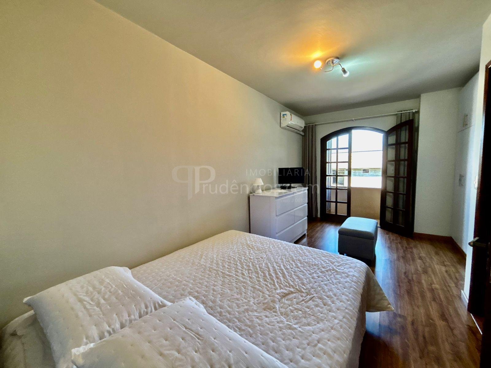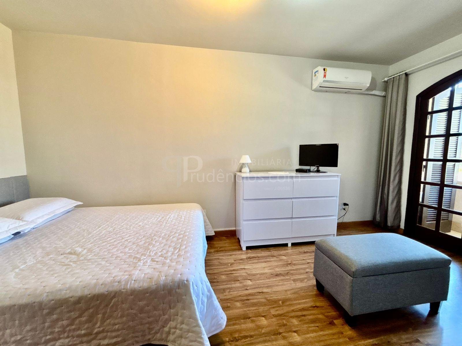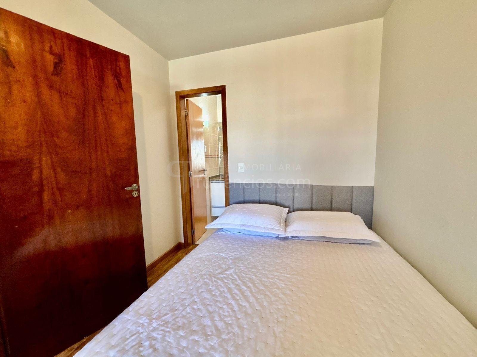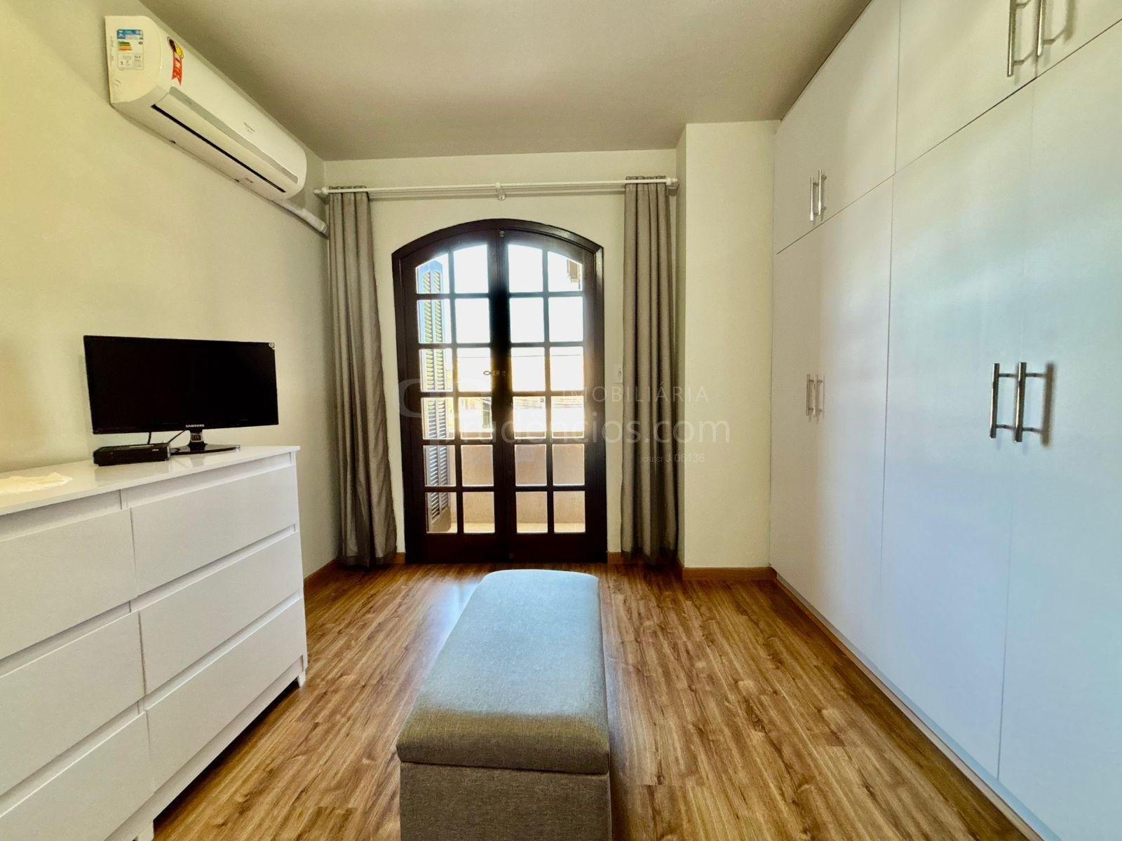 São três dormitórios bem distribuídos: um quarto juvenil totalmente mobiliado, com cama e ar-condicionado, um quarto adulto com guarda-roupas em toda a extensão da parede e espaço para cama e área de trabalho, além de uma suíte espaçosa, com closet e sacada com uma bela vista.
