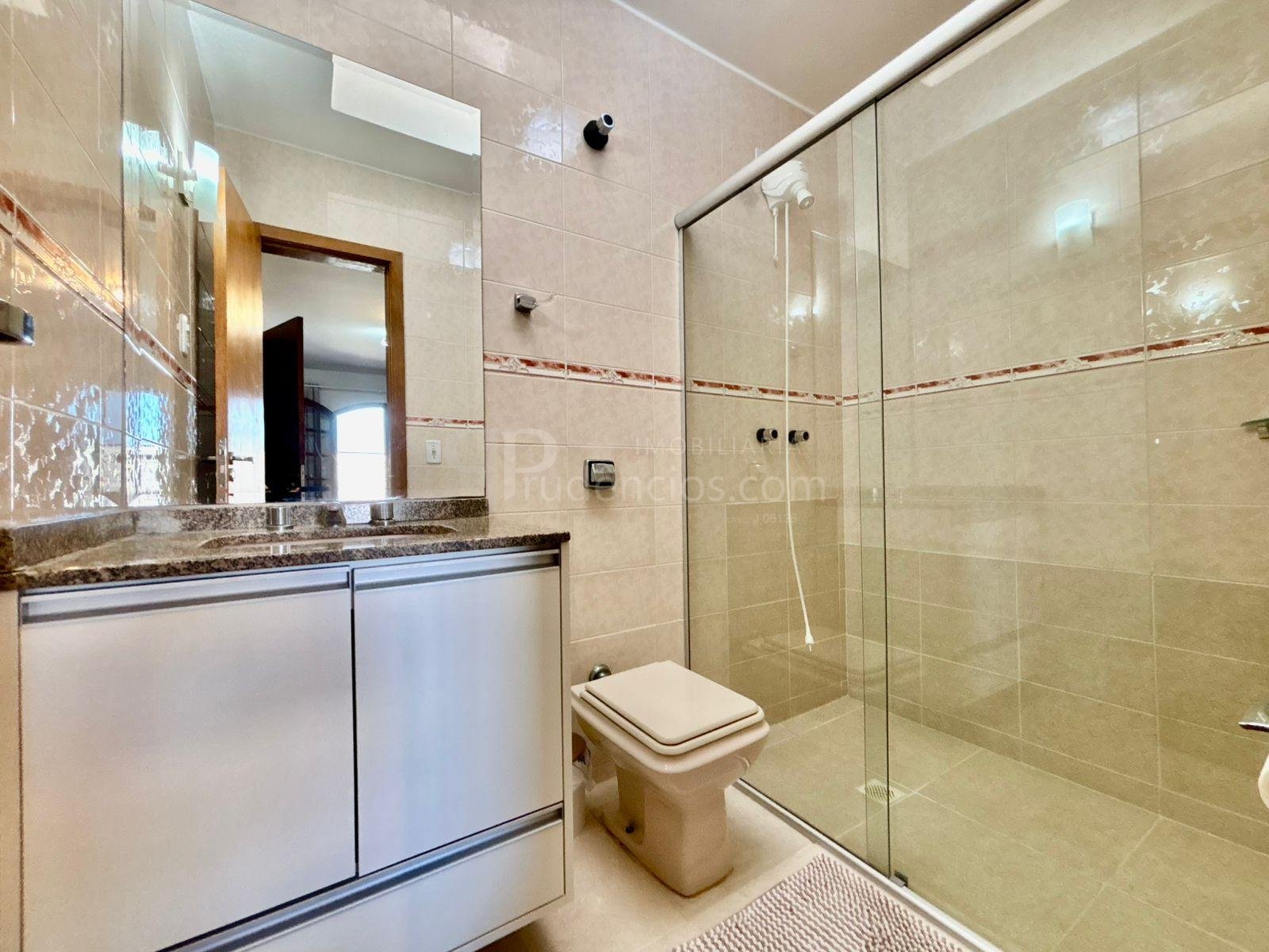 Neste segundo pavimento, encontra-se um banheiro social ventilado, com armários, espelho e box.