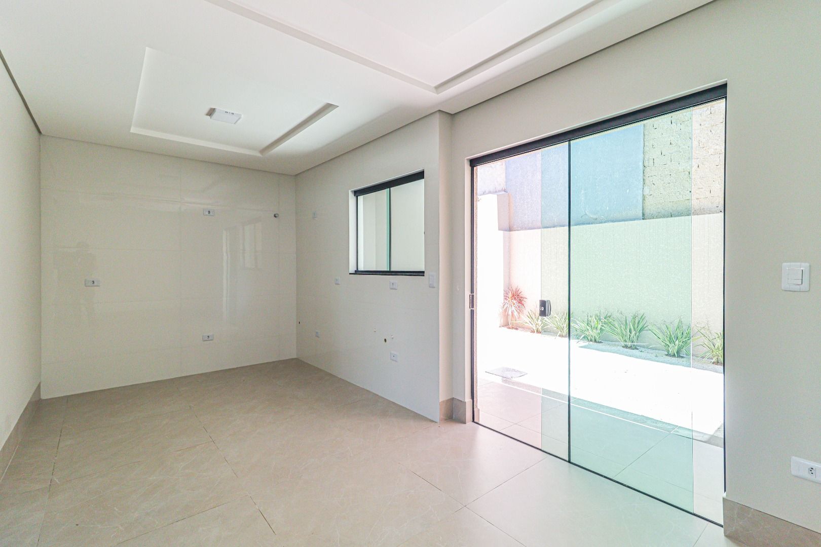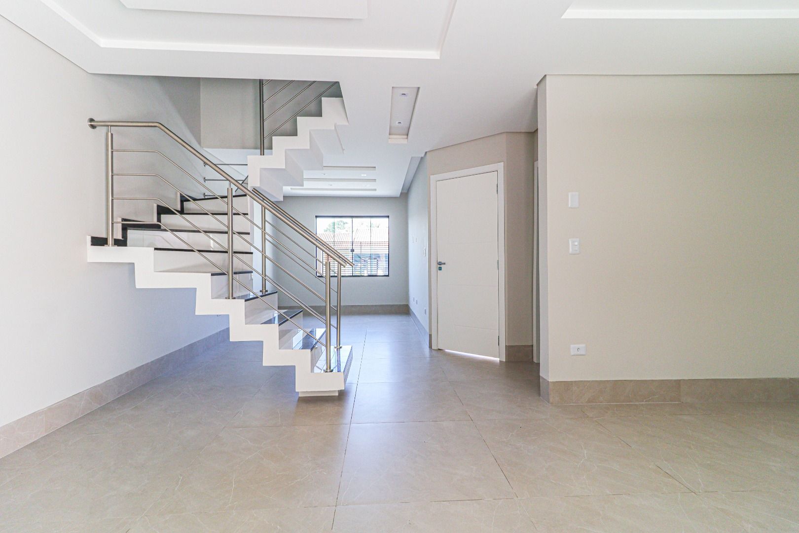 -Sala de Estar Ampla: Piso em porcelanato que combina elegância e praticidade.